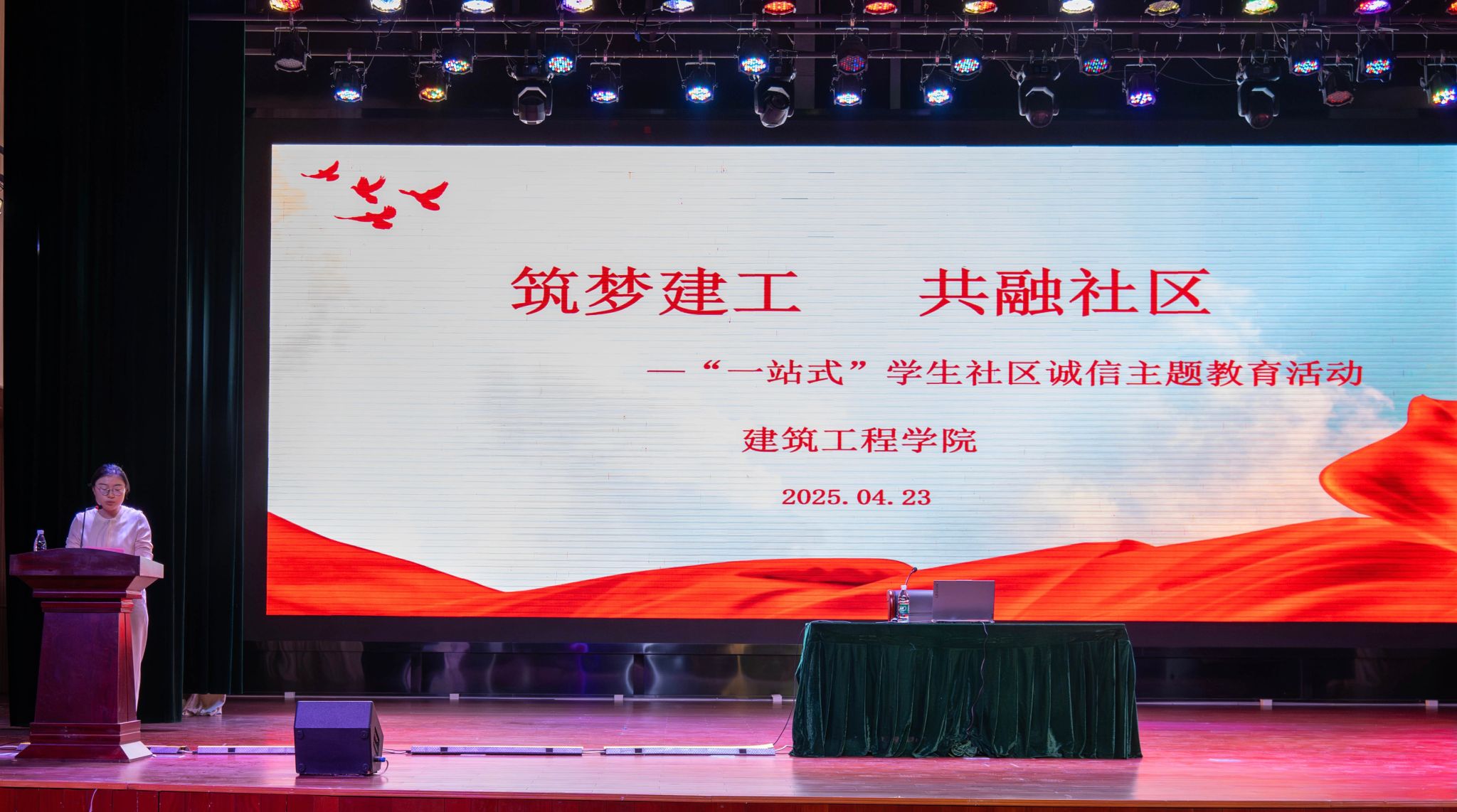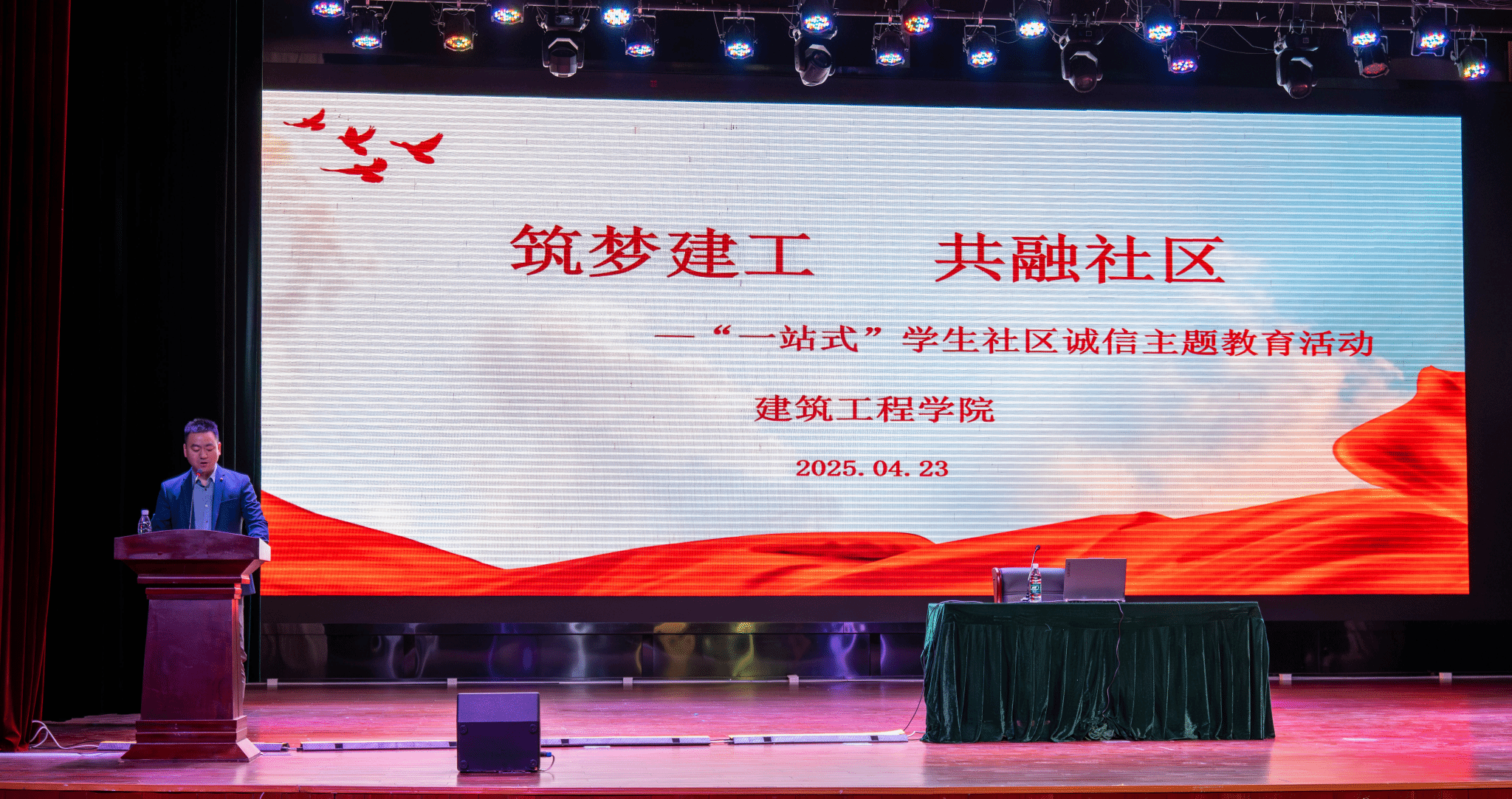 4月23日晚,建筑工程学院在海门校区800人报告厅开展2025 年“一站式”学生社区诚信主题教育活动启动仪式。学院党总支副书记吴颖、副院长王斯海、辅导员司晶、杜秦及2024级全体学生参与本次活动。活动特邀正高级工程师、江苏省 “333 高层次人才” 钱野老师作为嘉宾,以专题讲座为活动启动注入专业力量。