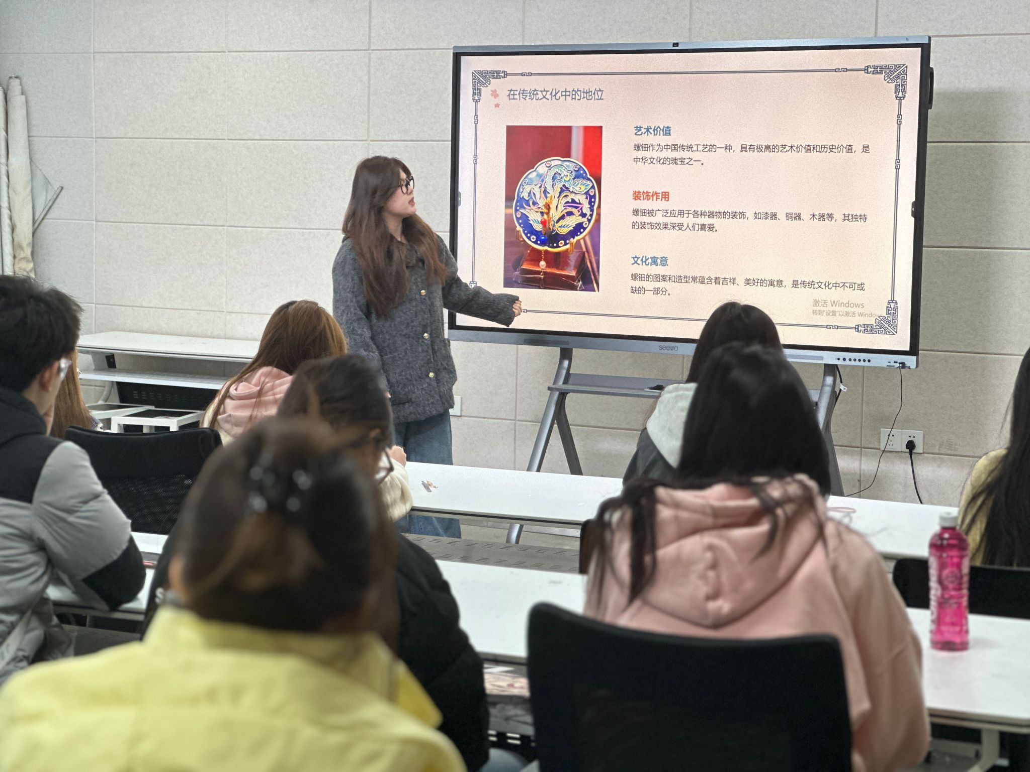 3月8日女神节当天,织绣阁刺绣社团在有恒楼302举办了“古艺新裁绽芳华 非遗螺钿进校园”女神节特别活动,旨在将传统文化非遗技艺与节日氛围巧妙融合,引领同学们领略非遗魅力。活动吸引了众多学生踊跃参与。
