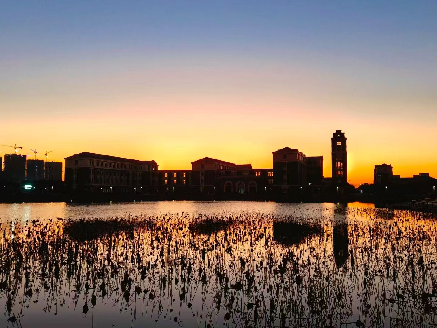 作品介绍:傍晚,踏入大学校园,便与一场绝美的夕阳邂逅。橙红色的光辉倾洒而下,为平日里熟悉的教学楼、钟楼披上了一层梦幻的纱衣。