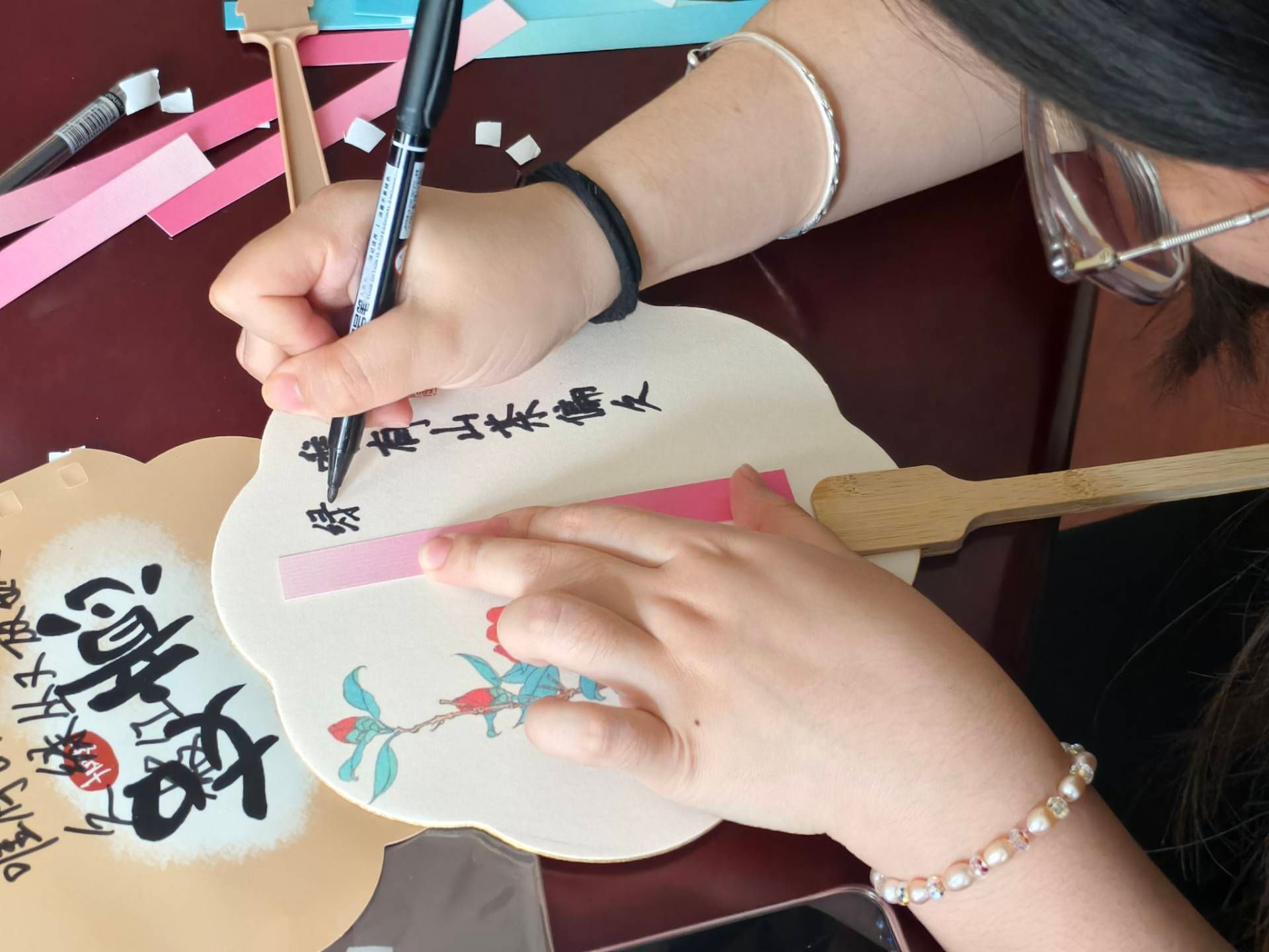 活动现场氛围热烈而温馨,同学们化身创意十足的诗人与手工艺人。他们手持空白团扇和纸编挂饰,或凝神思索,或灵感迸发,将内心的情感、生活的感悟、对未来的期许,以诗词的形式精心书写在这些手工艺品上。完成创作后,作者们纷纷走上台前,深情讲述自己创作诗词的缘由与背后的故事。这些真诚的讲述,不仅让大家更深入地理解了诗词的内涵,也拉近了彼此心灵的距离。在热烈的讨论与交流中,同学们相互理解、彼此支持,构建起温暖的心灵互助网络,在倾听与回应中感受到被理解、被接纳的力量。