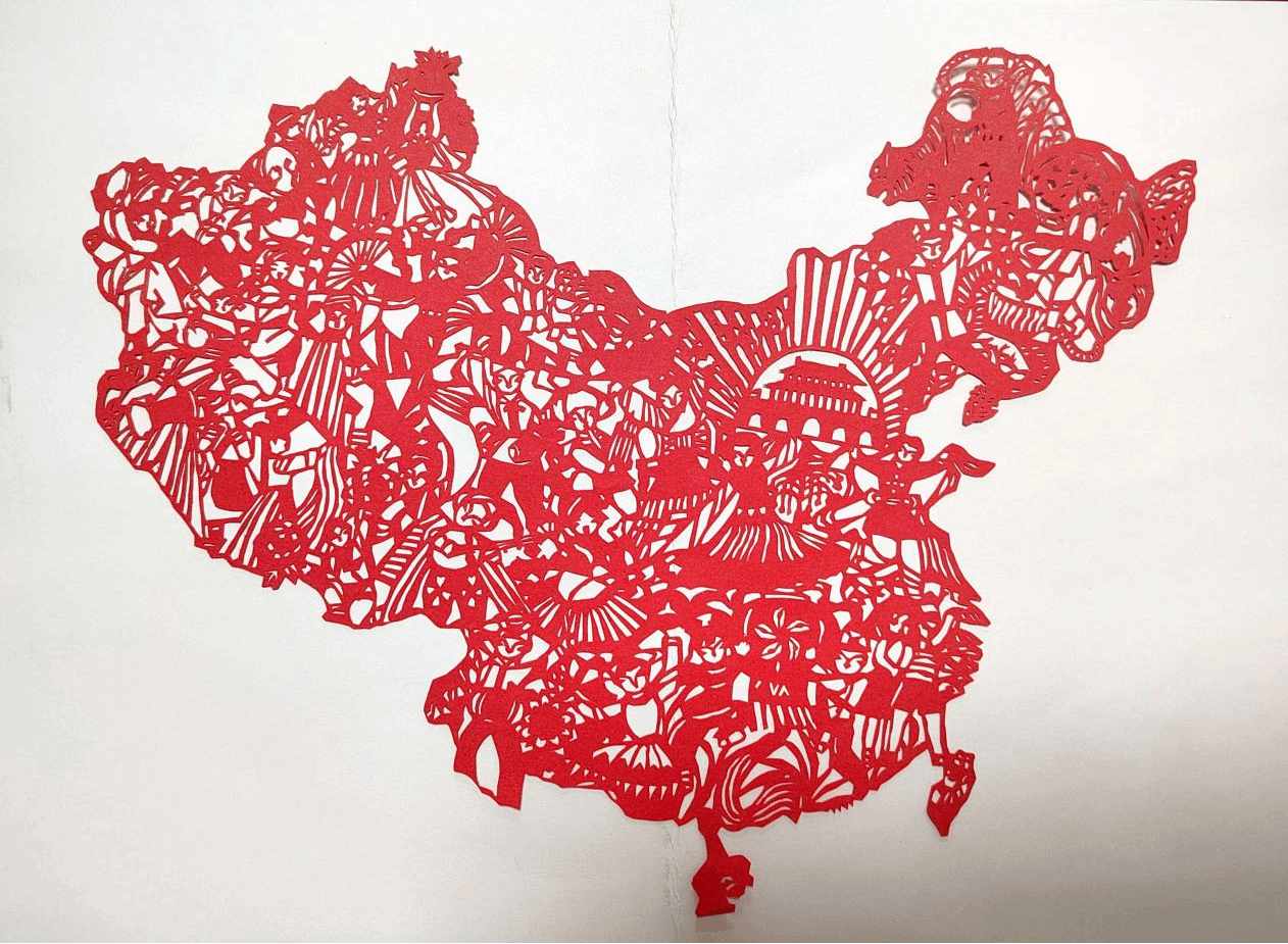 在创作这幅剪纸作品时,我们将对祖国的深情融入其中,以中国地图为载体,用独特的剪纸艺术形式展现中华大地的魅力。从技法层面,我们精心雕琢每一处细节。运用流畅且细腻的线条勾勒人物形象,通过疏密有致的布局呈现出丰富的人物动态。在人物服饰纹理与面部表情的刻画上,反复推敲,力求精准还原不同民族服饰的特色,生动传达人物的喜悦之情。