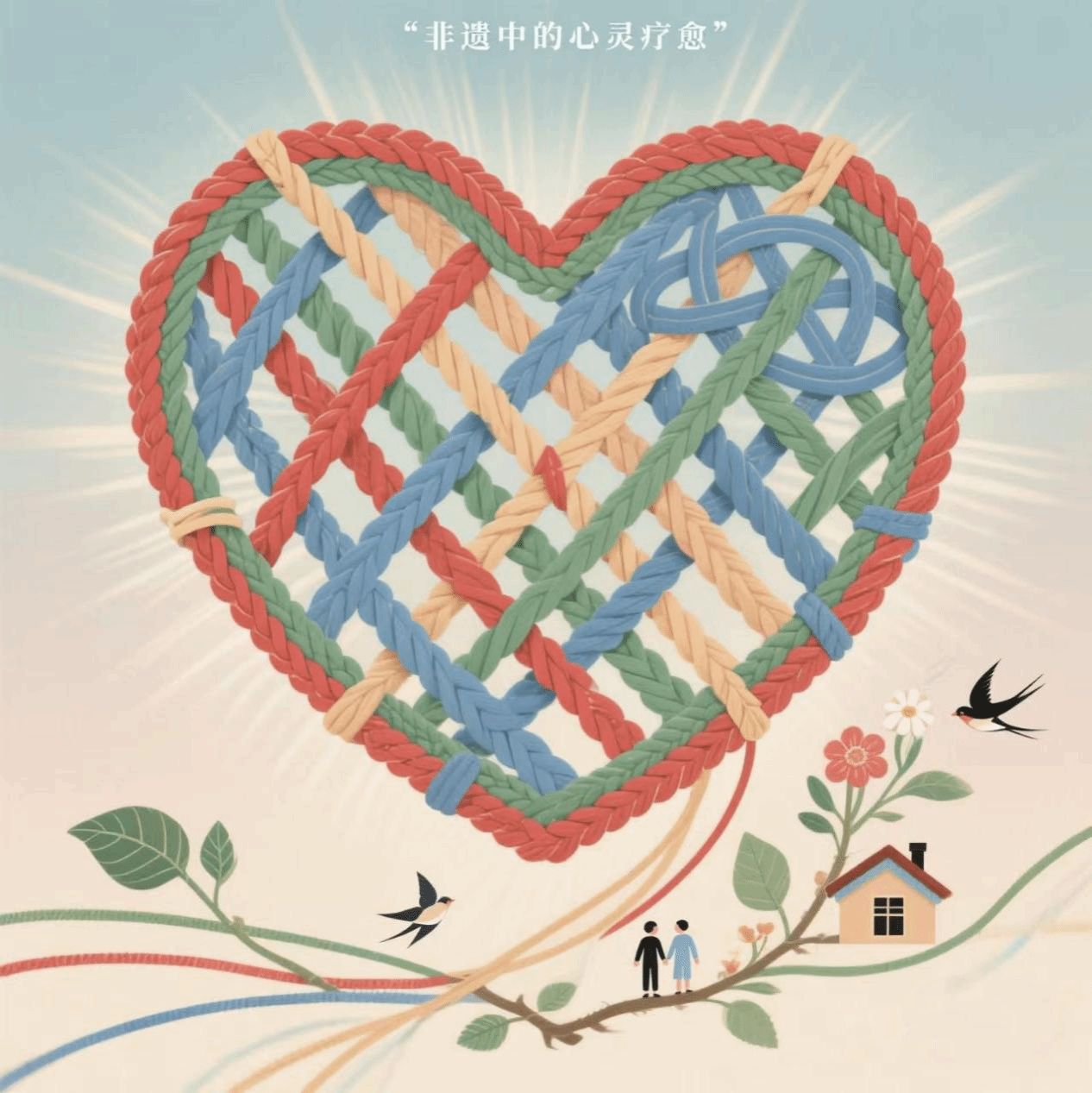 心理感悟:在创作中,绳编的交错如同人际关系的交织。每一个结都是一次情感的凝聚,每一根绳都是心灵的纽带。绳编的过程也是探索内心的过程,让我明白,当我们用心去编织生活,就能收获温暖与力量,实现心灵的和谐与安宁,感受非遗技艺带来的独特疗愈效果。