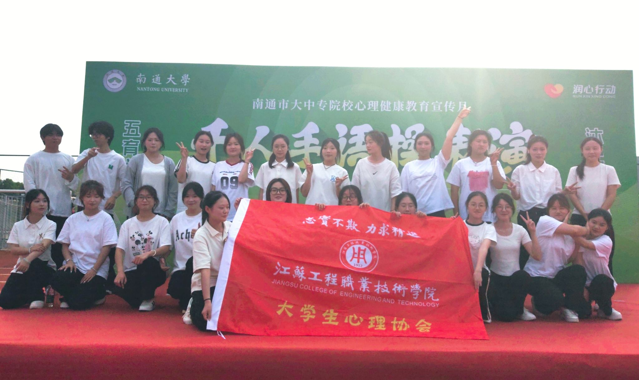 为响应南通市大中专院校心理健康教育专业委员会《关于举办“五育润心 沐光同行” 心理健康教育宣传月活动的通知》要求,我校于5月25日下午组织 24 名大学生心理协会骨干赴南通大学啬园校区参加《我爱你中国》千人手语操表演。