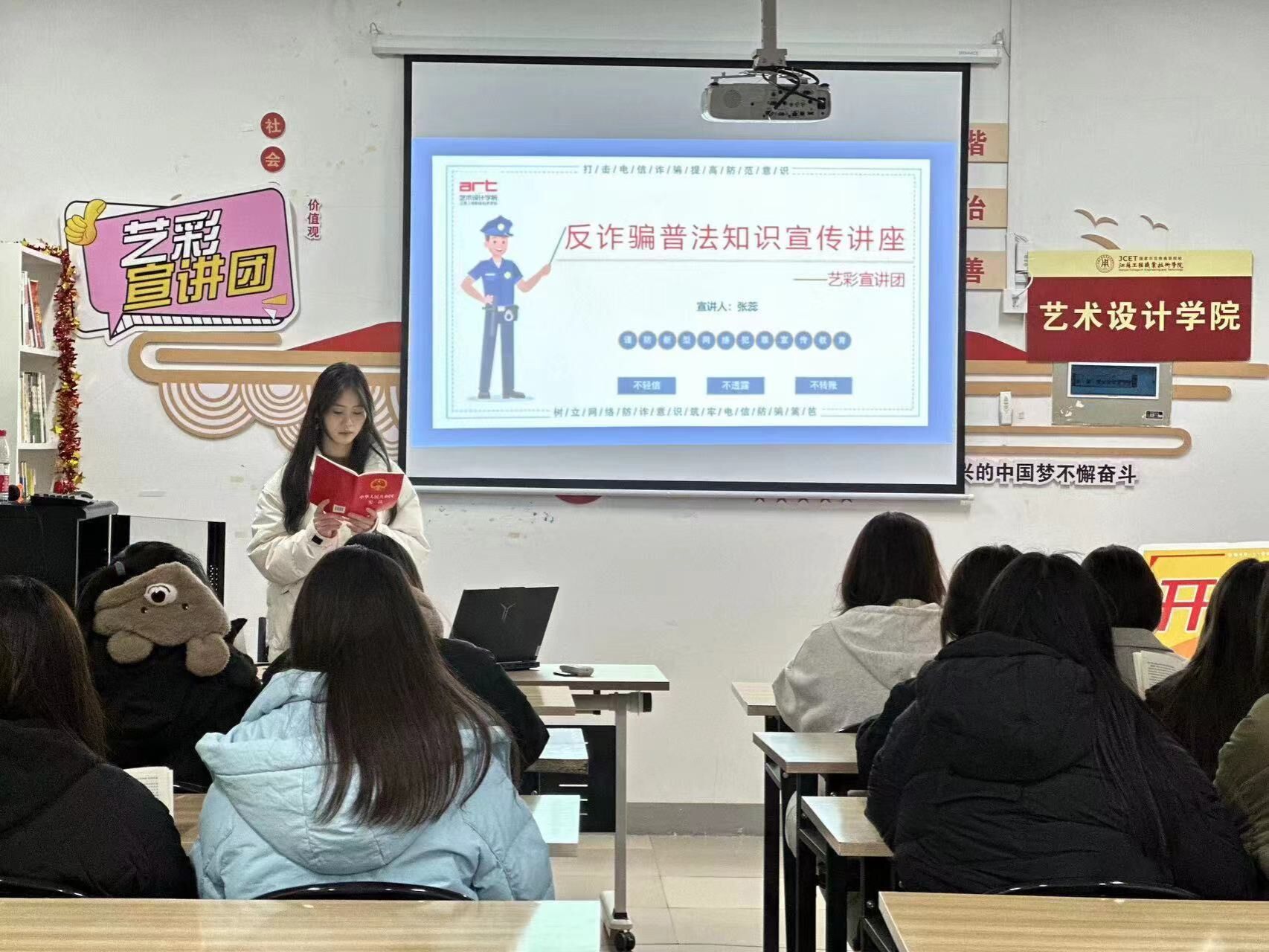 为深入学习贯彻党的二十大精神,深刻领会习近平总书记关于打击治理电信网络诈骗犯罪工作的重要指示精神,12月13日晚,艺术设计学院艺彩宣讲团深入崇川校区红色家园一站式社区活动室开展反诈普法宣传活动。