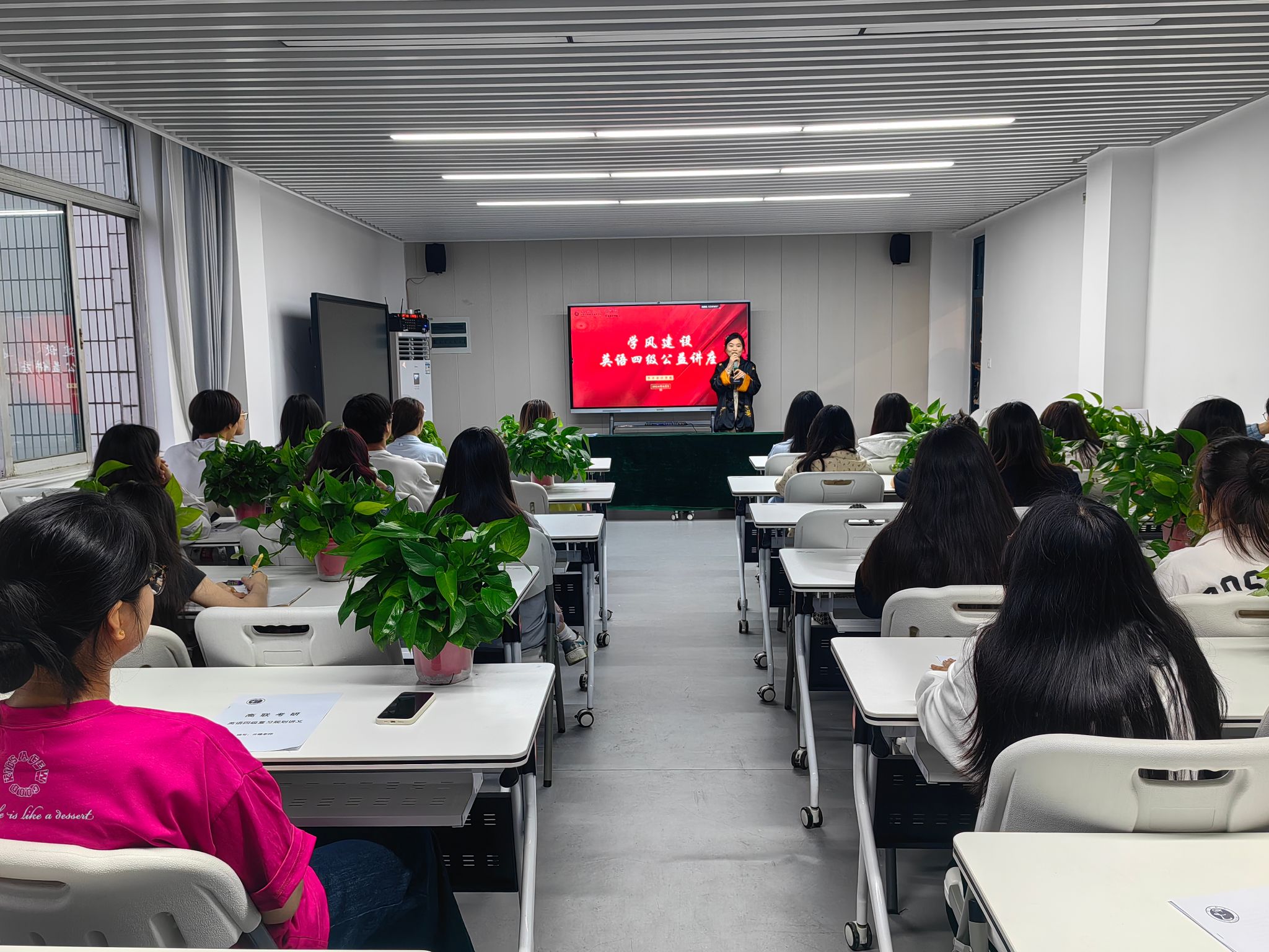 6月5日晚上,艺术设计学院在有恒楼222会议室开展“树学风 铸良才”大学英语四级公益讲座。讲座邀请了南通高联教育英语老师云臻担任主讲,现场共计60余名学生参加。
