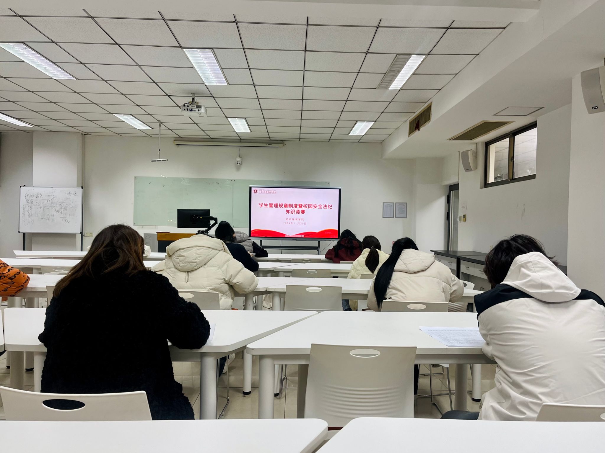 为进一步加强学生纪律观念和习惯养成教育,推动优良校风学风建设,11月25日晚,纺织服装学院于强毅楼503举办了学生管理规章制度知识竞赛。经过前期自主报名、班主任推荐和学院初步选拔,最终共10名学生参加本次知识竞赛,比赛以闭卷考试的形式进行,旨在考察学生对《学生手册》中内容的掌握情况。