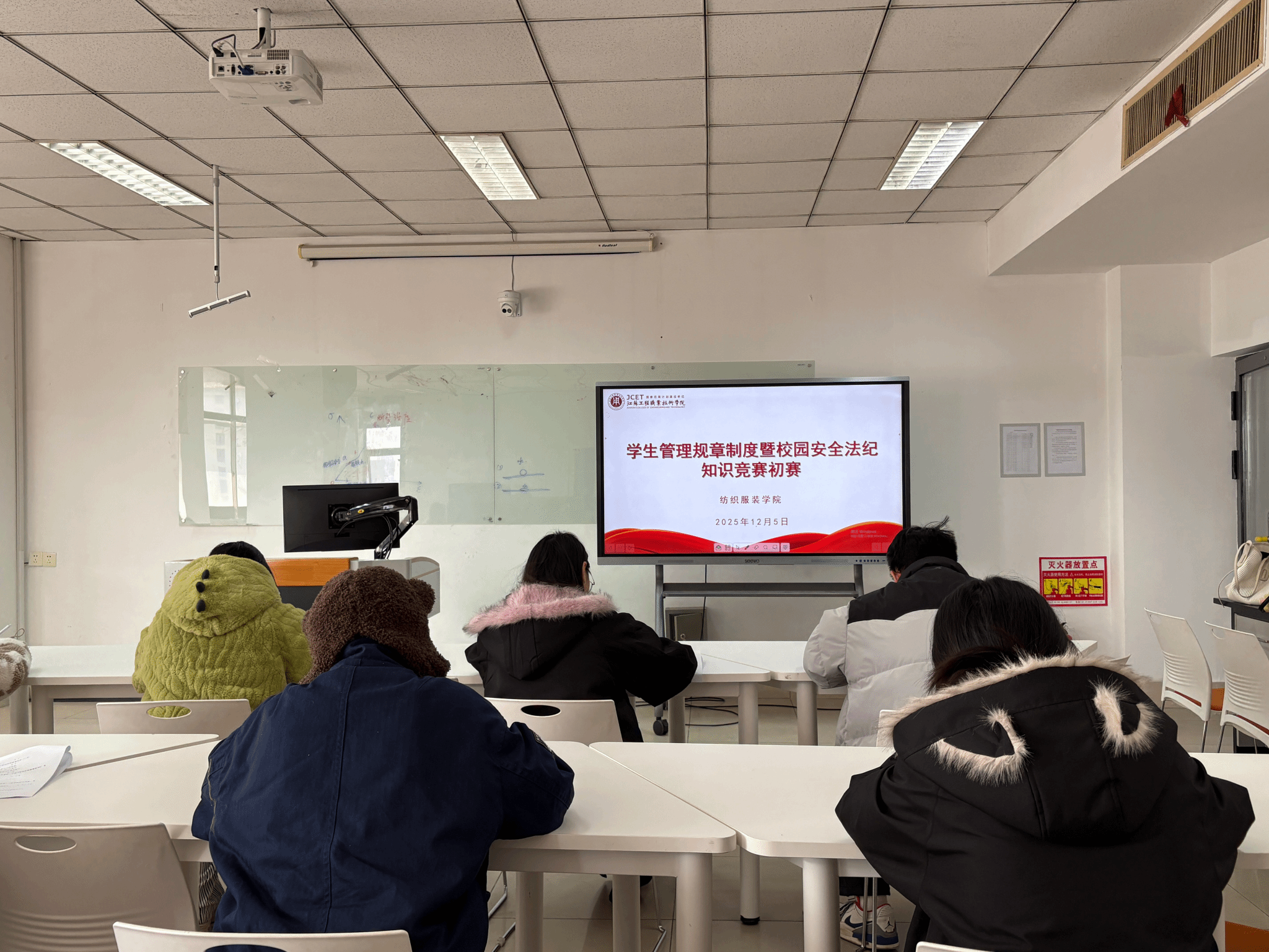 为进一步强化学生纪律意识与行为习惯养成,促进优良校风学风建设,纺织服装学院于12月5日中午在强毅楼503举办学生管理规章制度知识竞赛。经自主报名、班级推荐及学院初步筛选,共有25名学生进入最终比赛。本次竞赛采取闭卷考试形式,重点考查学生对《学生手册》相关内容的熟悉程度。