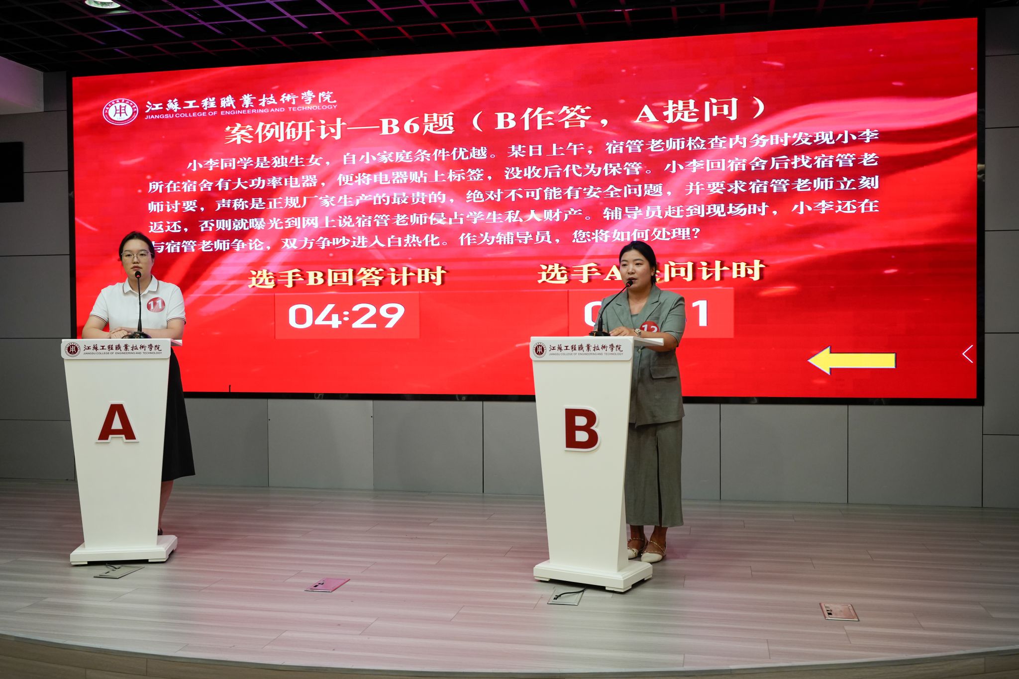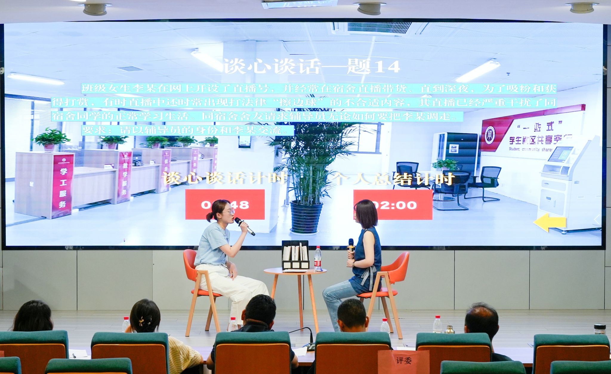 本次大赛历时一个多月,经过基础知识测试、学院选拔推荐、赛事培训,14名来自7个二级学院的一线专职辅导员晋级决赛,决赛设置案例研讨和谈心谈话两个环节。比赛结束后,徐红波、孙家峰针对案例研讨、谈心谈话环节辅导员们的现场表现进行了专业点评和指导。