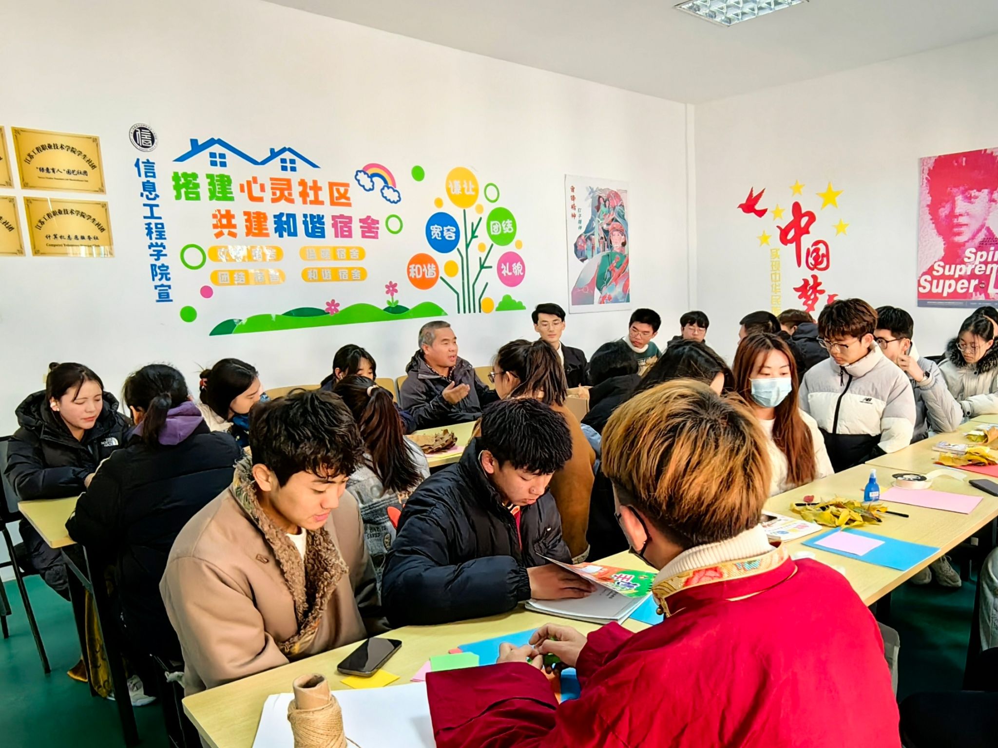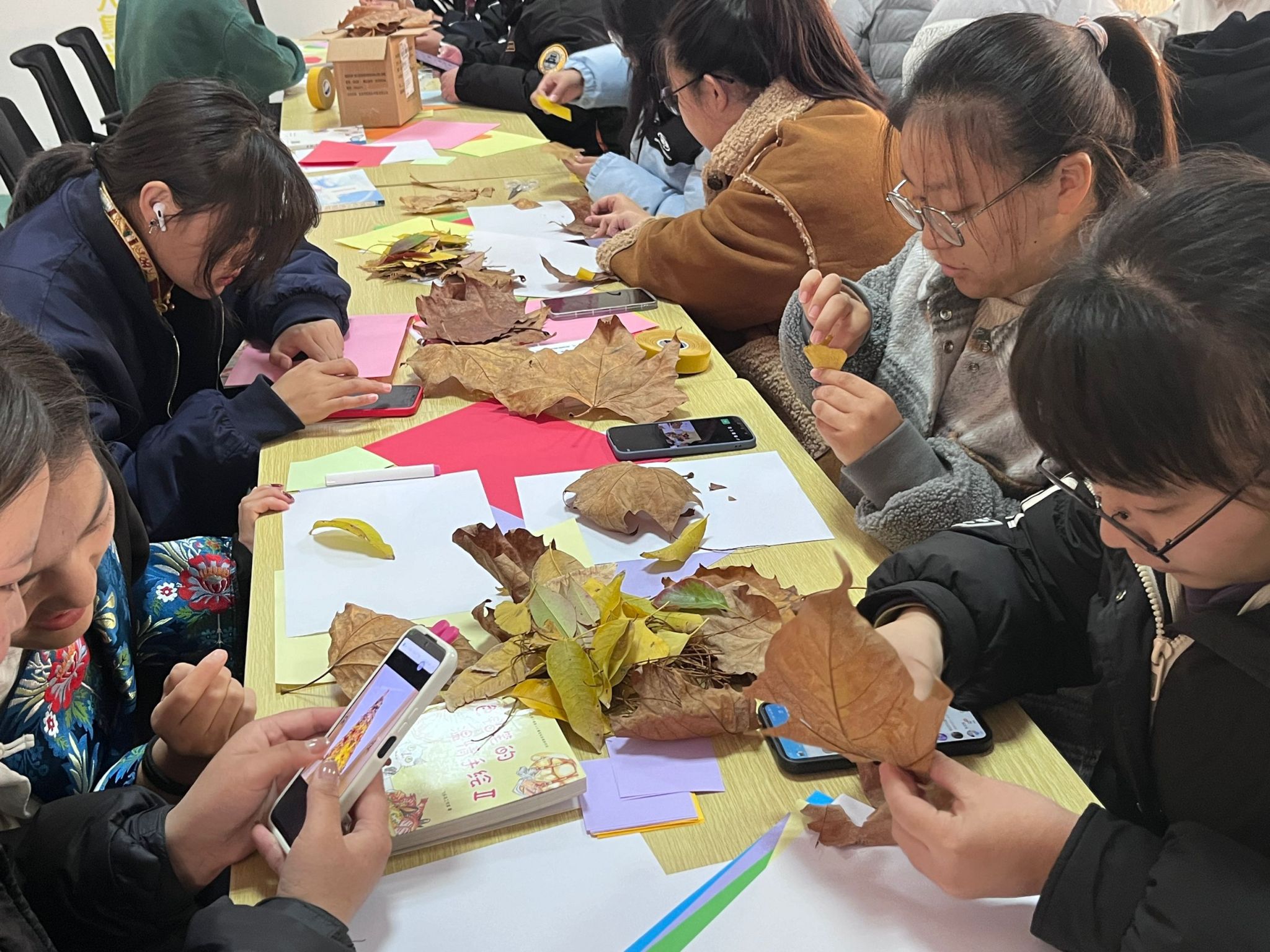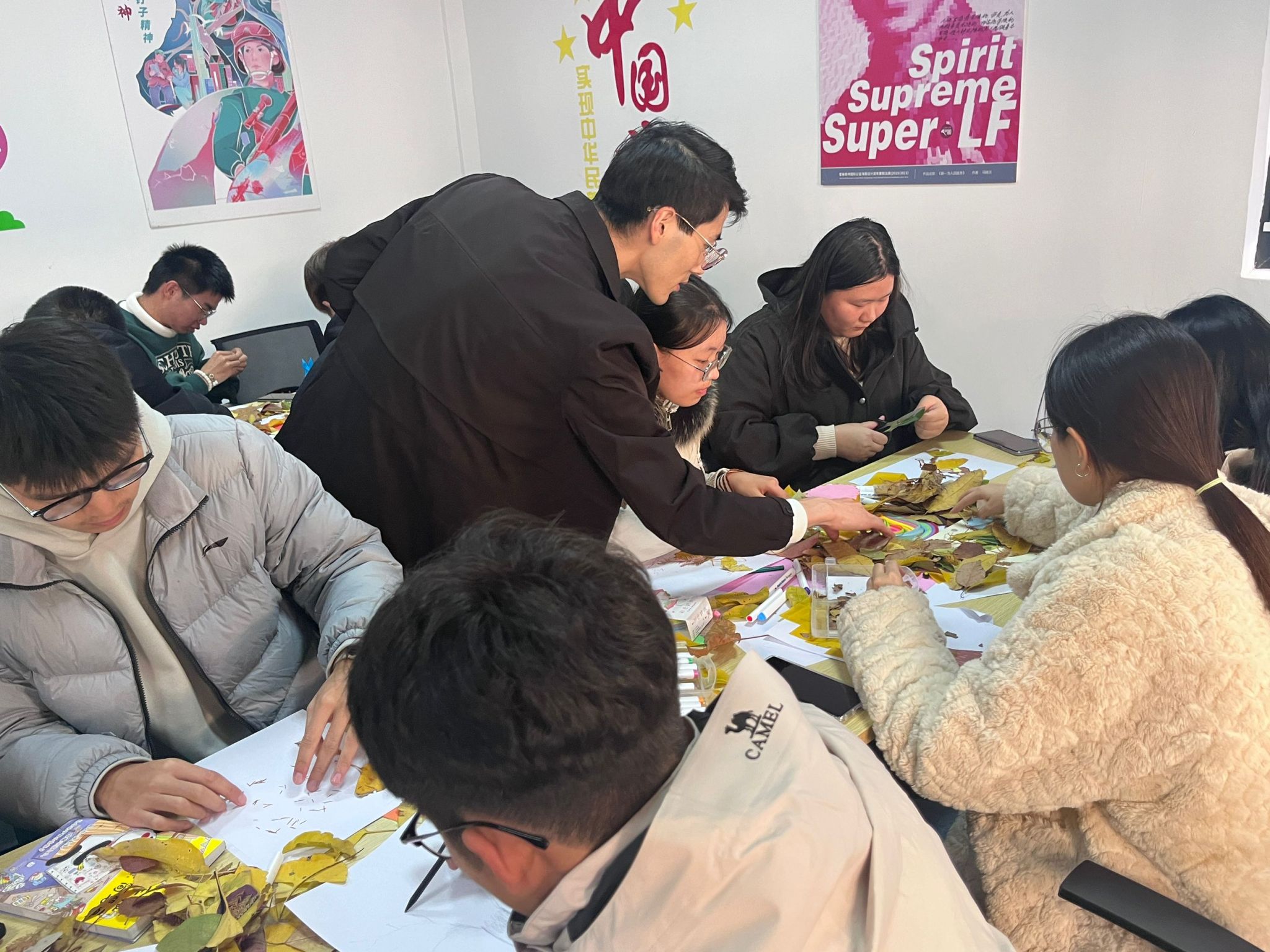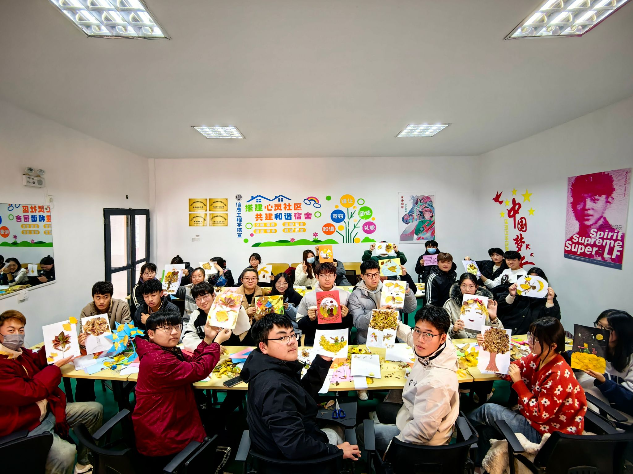 为深化“一站式”学生社区建设,帮助学生们正确树立审美观,培养创造美的能力,2023年12月1日下午,信息工程学院在海门泽生社区1、2号楼学生活动室举办树叶创意贴画活动。本次活动由 “绿意育人”园艺社团、红石榴辅导员工作室和信者无疆辅导员工作室联合举办,海门校区管理办公室副主任梁海峰,社团指导老师韩政,部分社团成员和民族生参加。