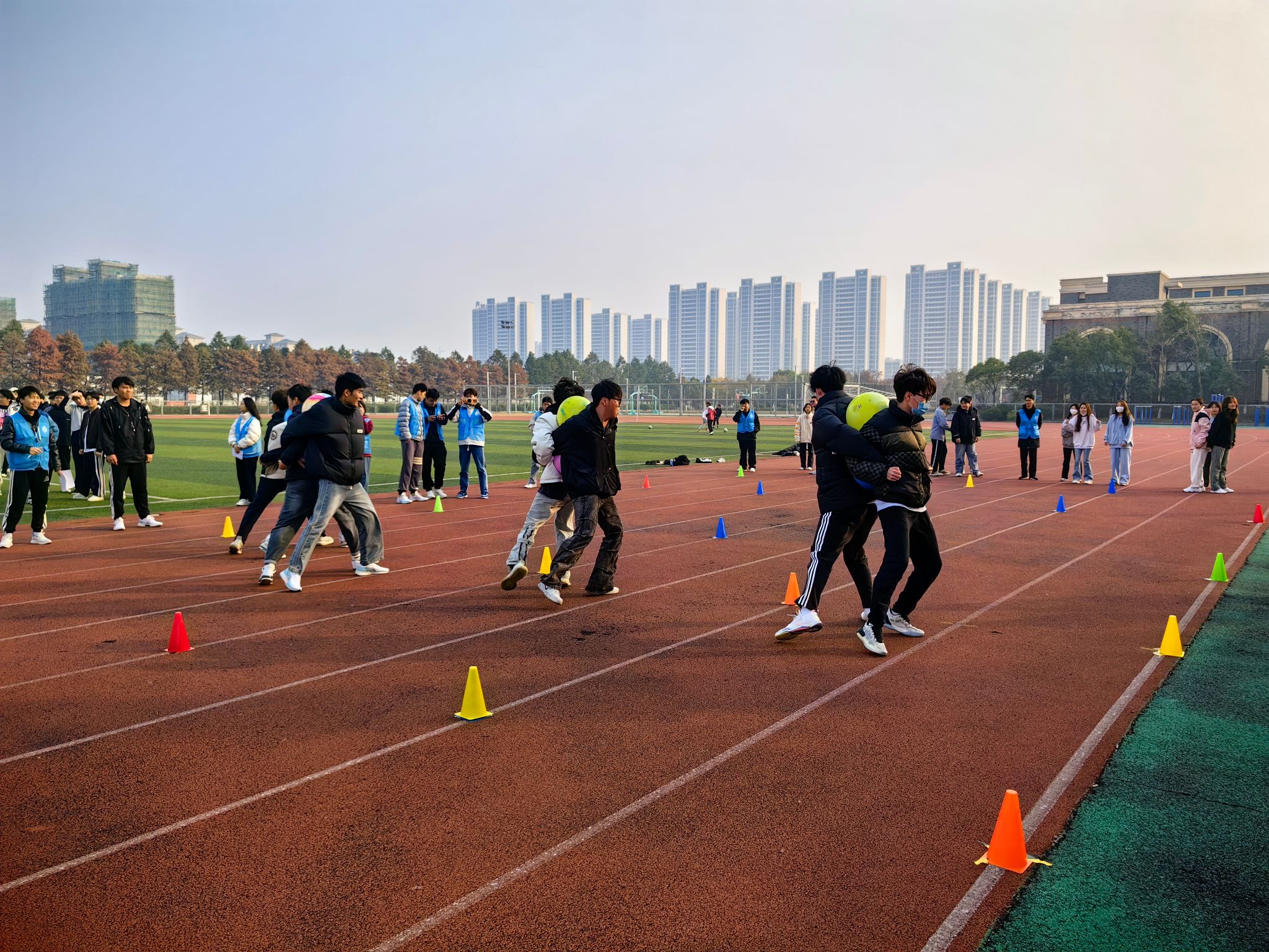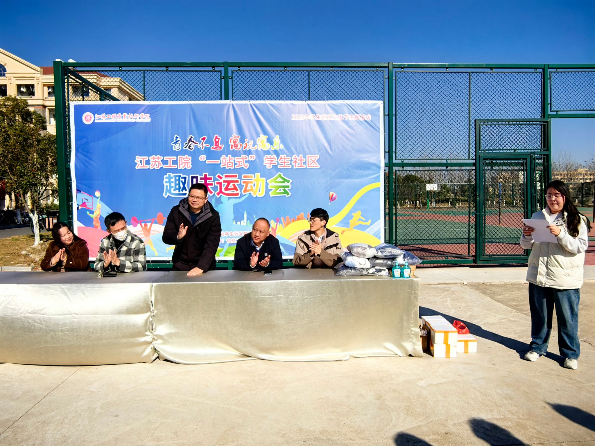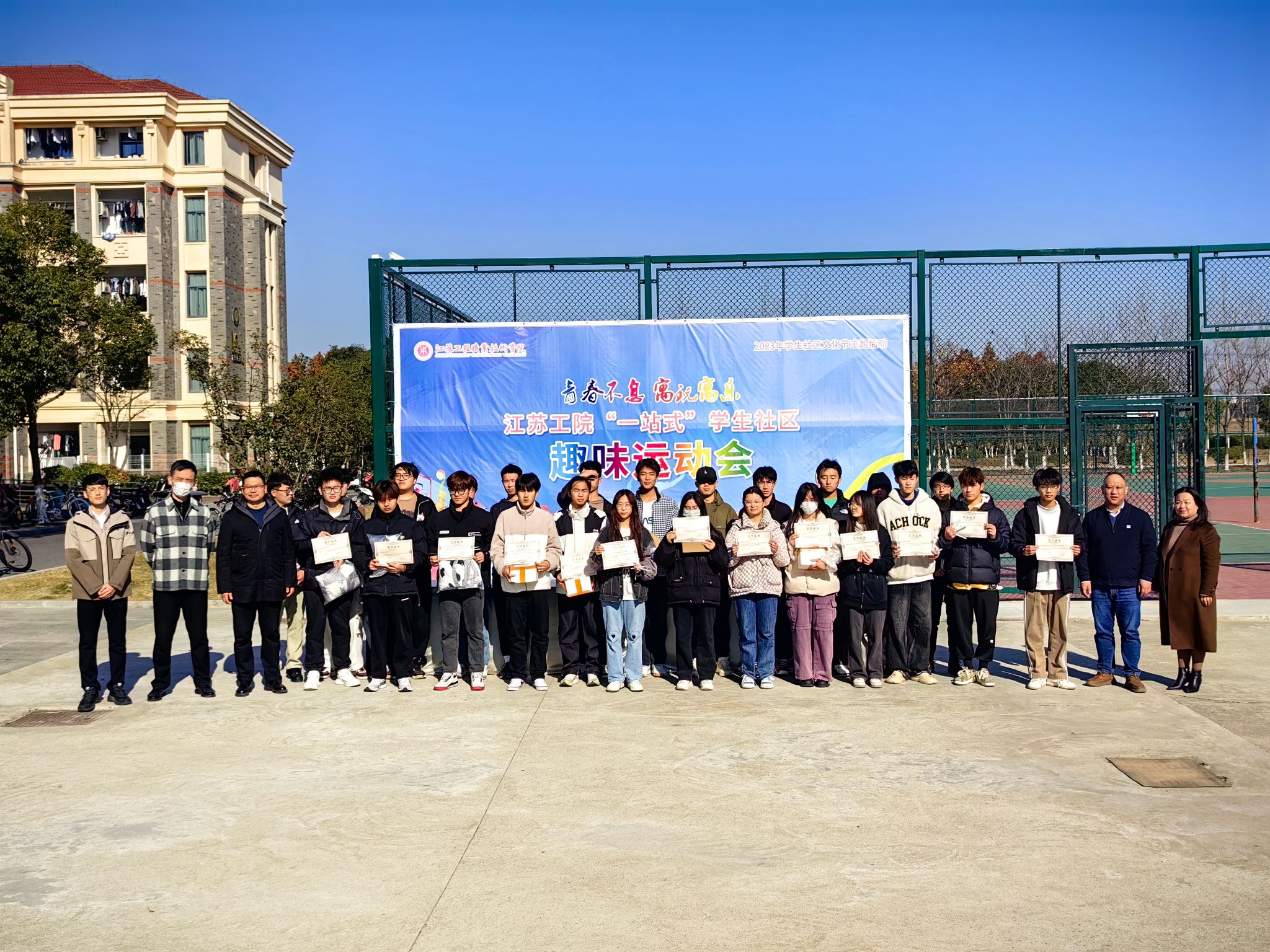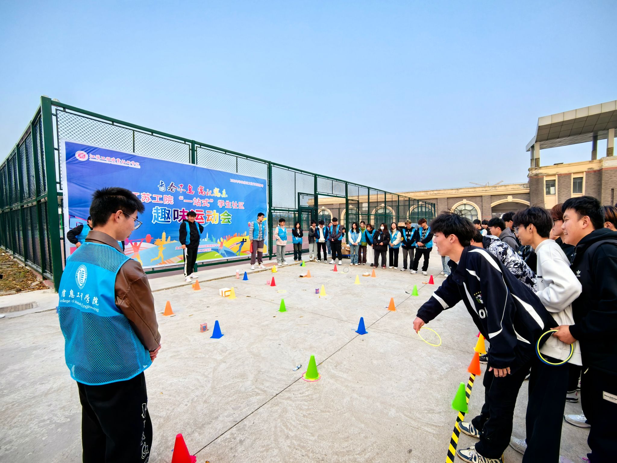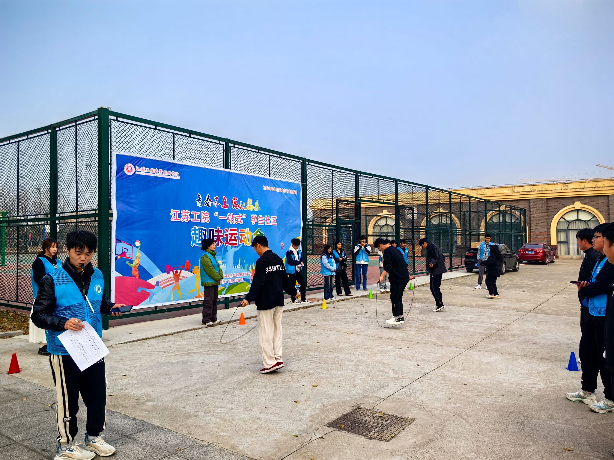 为深化“一站式”学生社区建设,发挥竞赛激励功能,弘扬中华体育精神,2023年12月6日-8日,我校在海门校区成功举办江苏工院海门校区“一站式”学生社区趣味运动会。本次活动由学工处学生社区管理服务中心主办,信息工程学院红石榴辅导员工作室、信者无疆辅导员工作室、“绿意育人”园艺社团联合承办,海门校区管理办公室主任于镇洲、副主任梁海峰,学工处副处长刘宇、学生社区管理服务中心老师钱琨,信息工程学院党总支副书记高飞、辅导员韩政,以及海门校区各二级学院参赛学生参加。