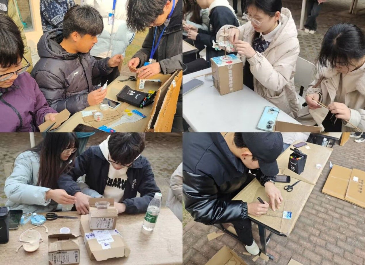 在前期的积极宣传下,当天不少同学自带工具材料提前来到约定的社区活动室。工作人员宣布活动开始后,同学们便迅速动手制作起来。有的拿着画笔在认真绘画,有的拿着剪刀在仔细裁剪,有的在跟队友热烈讨论,现场气氛欢乐又热烈。在同学们的奇思妙想下,原本废旧的纸板、包装盒变成了漂亮的发音盒、可爱的桌饰、精巧的储物箱,这让前来观看的同学连连称赞。成果展示后经线上投票,最终两校区各评出一等奖两位、二等奖五位、三等奖七位以及优秀奖十位。