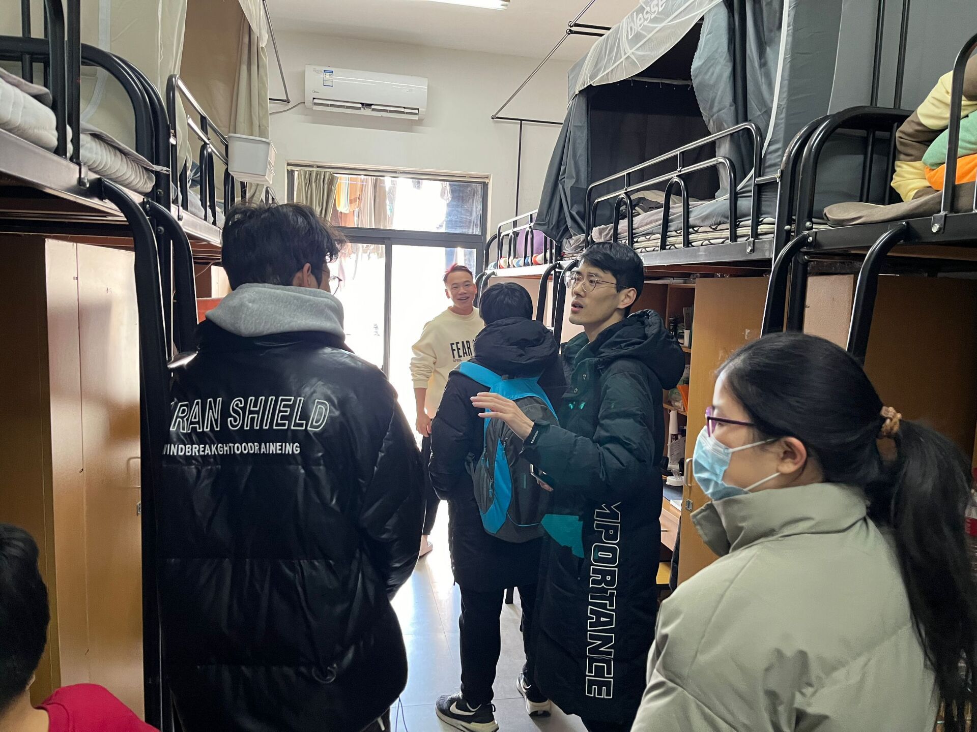 宿舍走访过程中,高飞进行消防安全宣传、管制刀具检查、疾病预防讲解和其他注意事项提醒,强调宿舍用电安全、严禁私拉电源和使用违章电器,提醒学生合理增减衣物,谨防着凉发烧感冒,及时做好宿舍通风,保持良好的个人及宿舍卫生。韩政对空调不规范使用、阳台放置不安全物品、宿舍烟头等问题进行批评教育,告诫学生及时改正,并及时反馈班主任老师。