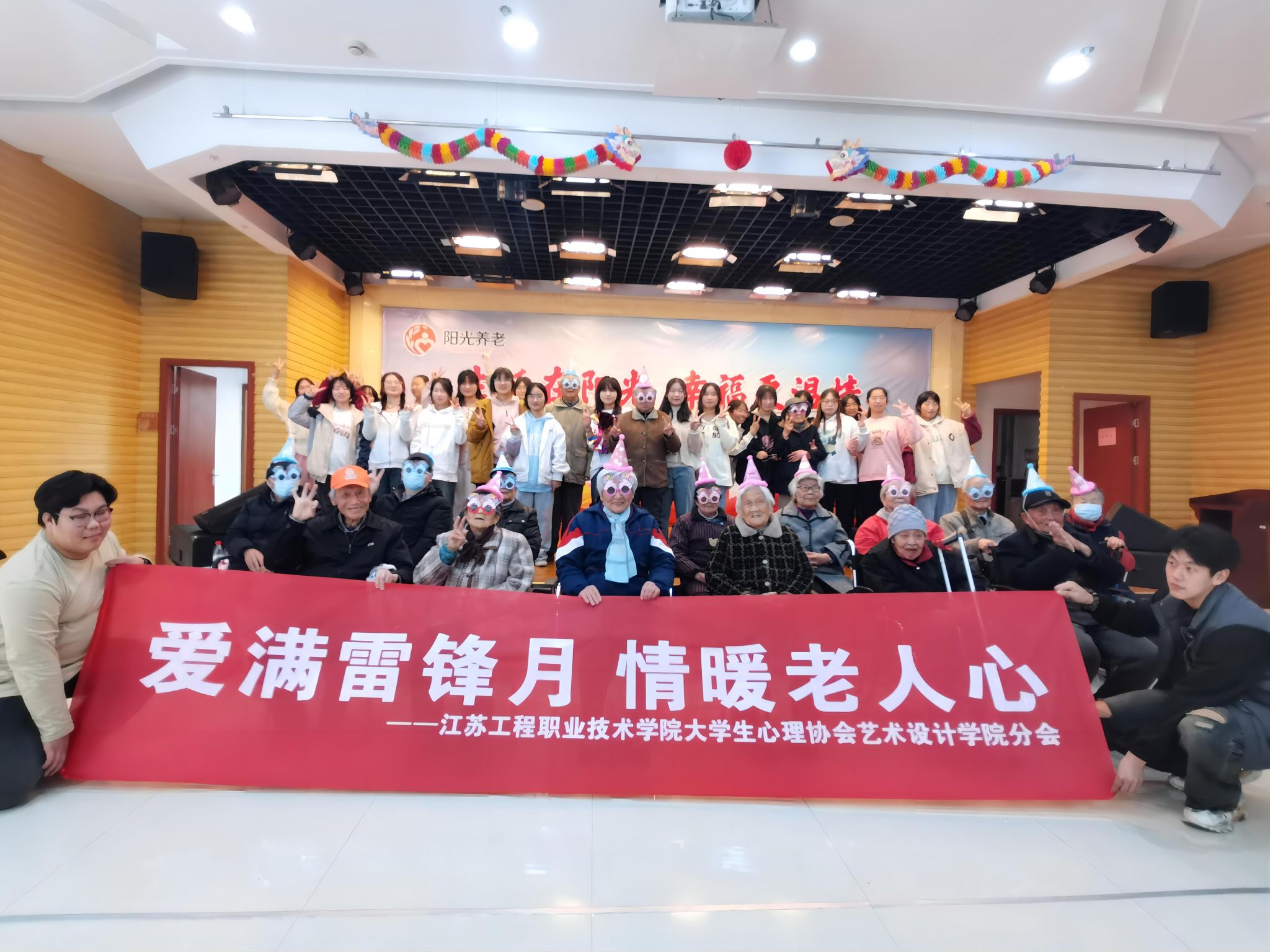 3月16日下午,艺术设计学院在崇川区阳光老年公寓开展“爱满雷锋月 情暖老人心” 心理关爱活动。本次活动由心理辅导员胡淑贤带队,江苏工程职业技术学院心理协会艺术设计学院分会的志愿者们共同参与。