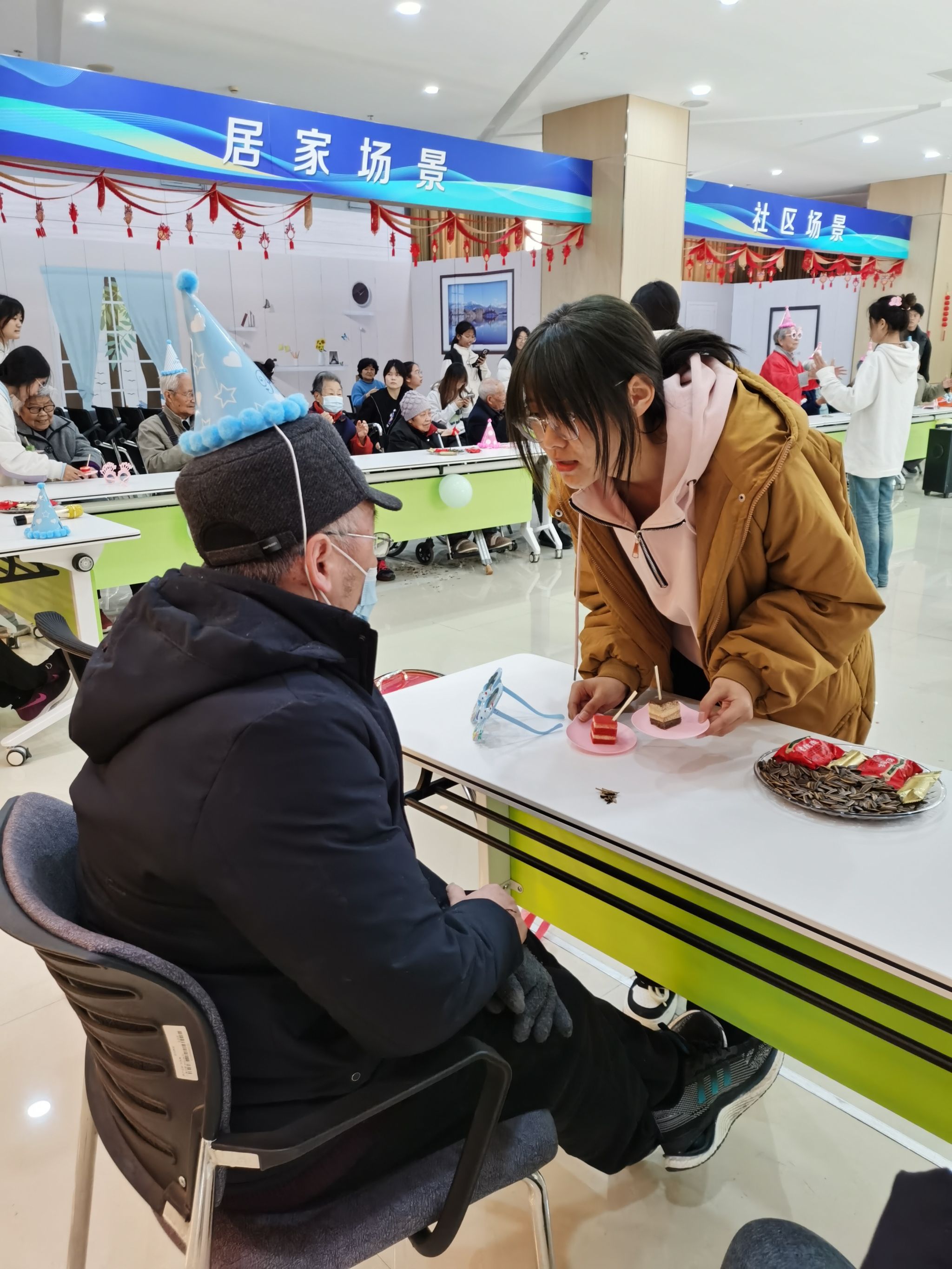 因正值阳光护理院三月生日的长者生日会,活动开始前,志愿者们贴心的为寿星们佩戴生日帽和可爱的生日眼镜。开场一首《A ram sam sam》手势舞拉开了活动序幕。活动中,志愿者们向在座的长者致以最诚挚的生日祝福,与长者们热情互动,贴心地为每位长者送上铿锵有劲的合唱、暖心有爱的手指减压操、简短实用的心理减压知识和甜蜜丝滑的小蛋糕,现场热闹非凡,其乐融融。手指减压操既可以锻炼手指灵活性,还能激发大脑活力。志愿者们进行了详细的讲解,可爱慈祥的爷爷奶奶们全神贯注地进行了音乐跟练学习,手舞翻飞间展现了长者们积极向上的精神面貌。