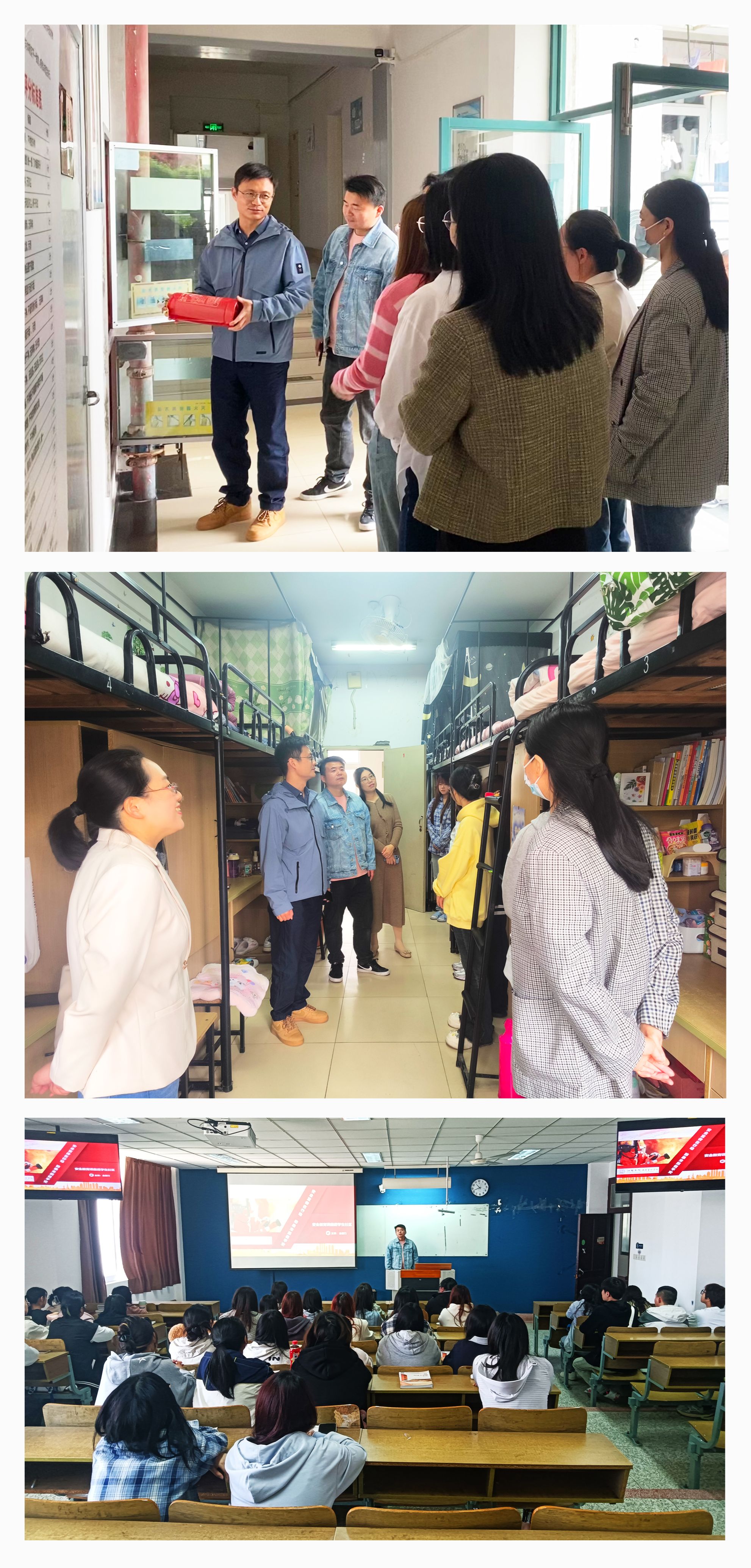 巡查结束后,辅导员金根竹作了题为《安全宣传在行动,防患未然促平安》安全教育进社区的专题培训。他从高校火灾典型案例、火灾应急处理准则、消防器材的使用以及安全逃生等四方面进行讲解,提醒同学们要提高宿舍安全意识,不使用违章电器、宿舍内人走电断、不私拉乱接等。各楼层长、宿舍长、各班干部要及时将同学们反映的问题进行梳理汇总,切实履行责任,维护宿舍安全,共同营造平安、和谐的学习生活氛围。