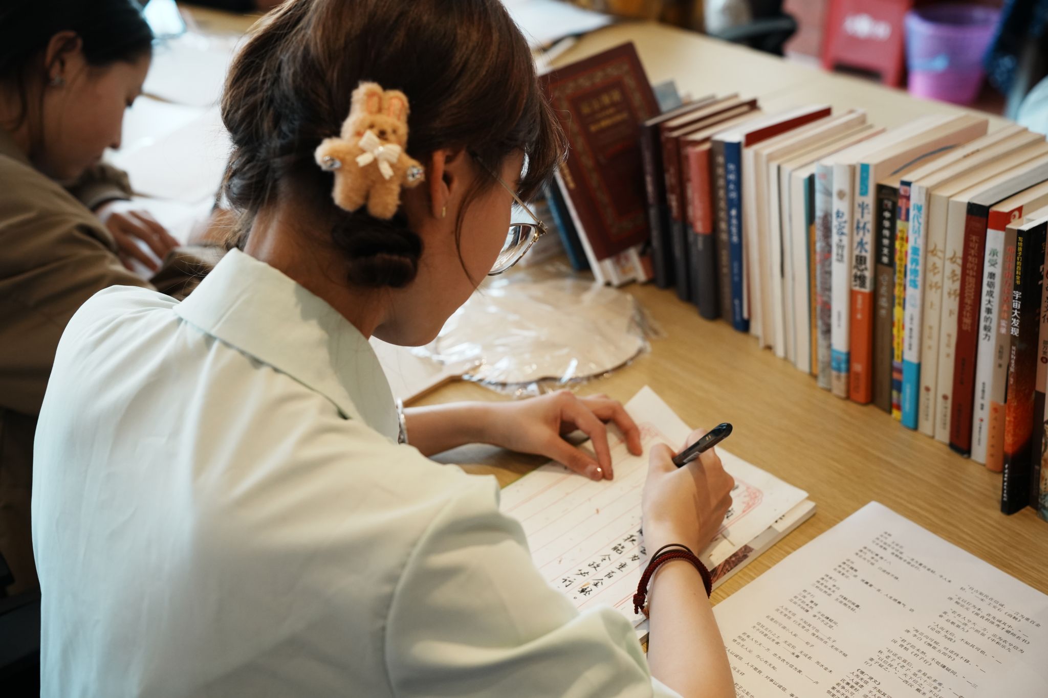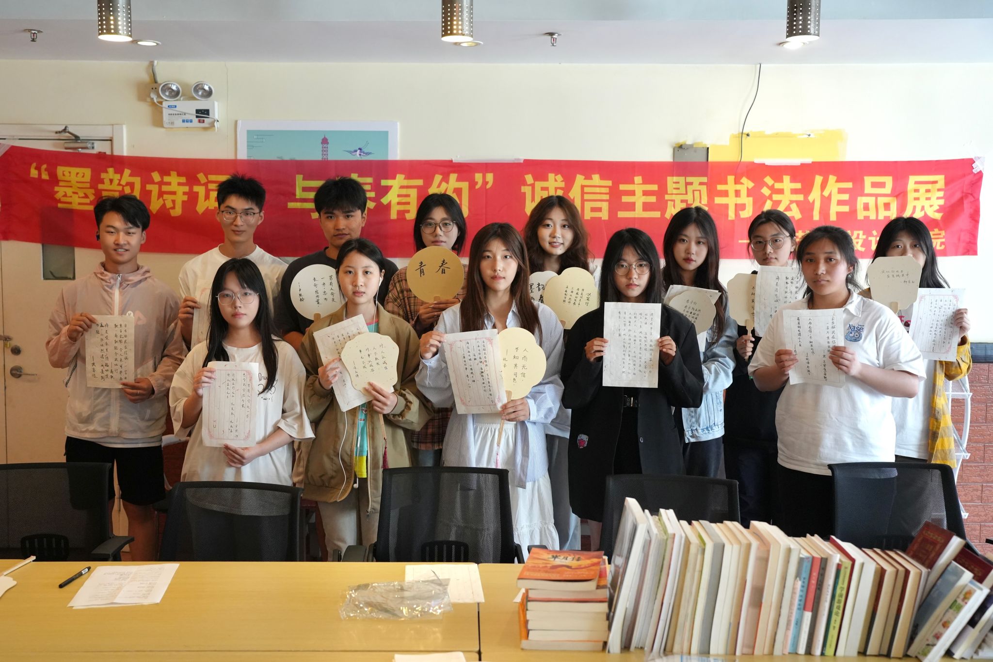 5月8日下午,艺术设计学院在崇川内10红色家园活动室举办“墨韵诗词,与春有约”诚信主题书法展示活动,辅导员张馨玉及20余名学生代表参加。
