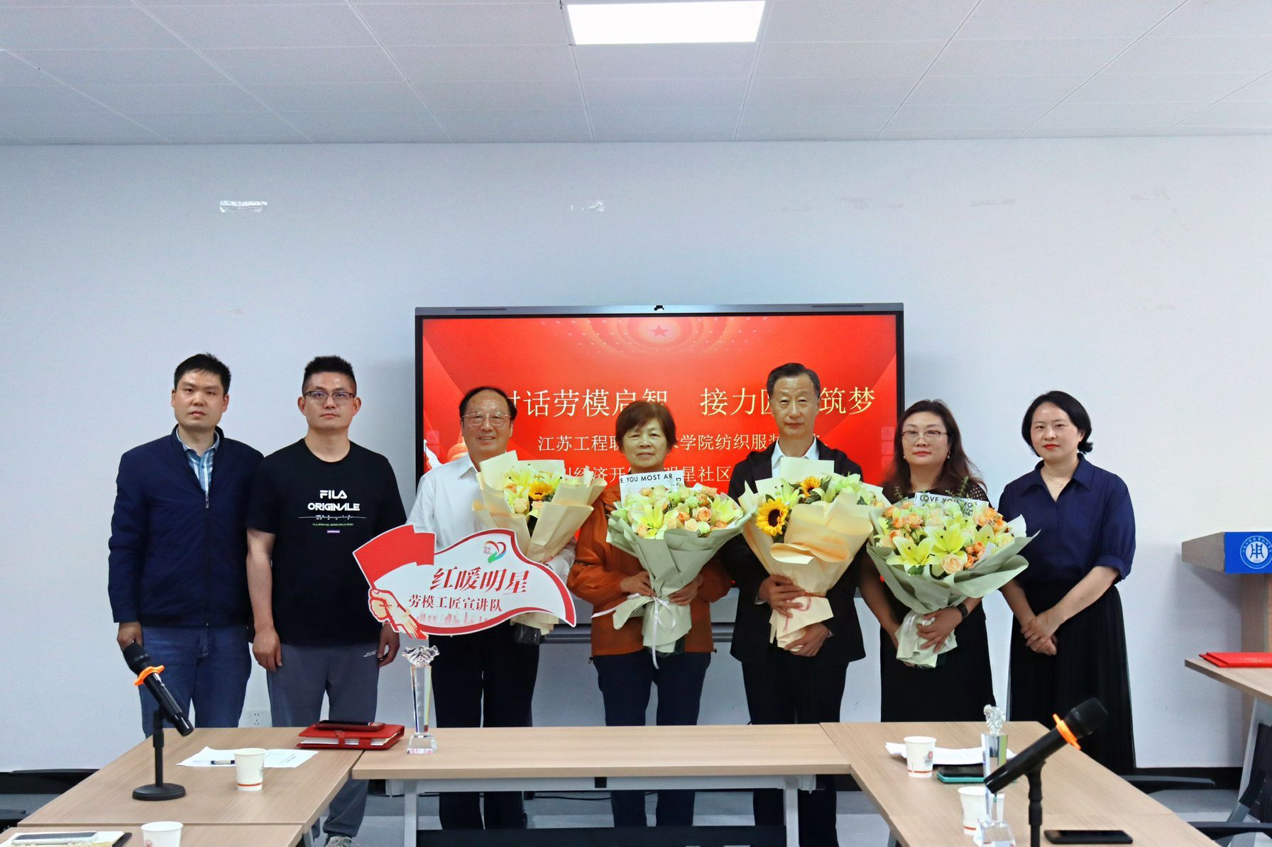 活动中,夏爱萍介绍了学院的发展历程、专业发展以及毕业生就业情况。王建春重点介绍了“红暖明星”劳模宣讲队的建立初心、运行情况及发展愿景。依托校社党建共建平台,学院关工委聘请“红暖明星”劳模宣讲团成员为校外实践指导员。四位劳模与师生分享了他们的成长经历和人生感悟。南通市劳模解建达以自身从人力到人手到人才再到人物的华丽蜕变为例,分享了如何成长、成才、成功的经验,他勉励同学们要科学分配一天中的3个8小时,努力提高自我学习、自我修炼、自我挑战、创造价值的能力,掌握工学研方法,注重理论与实践的结合。江苏省劳模阚桂兰结合自身从普通女工到技术能手的成长史,分享了纺织行业的发展变化以及自己投身基层治理、服务公益的心得体会。原老山前线某部班长、江苏省劳模何伟结合自身经历勉励同学们要敢吃苦、善吃苦、能吃苦,用奉献精神、扎根精神铸匠心。全国纺织工业劳动模范张菊芳分享了自己历经苦难和磨砺最后创富创业的历程,她勉励同学们脚踏实地、潜心钻研,做到干一行、爱一行、专一行,同时以传统文化做人,以科学管理做事。劳模们与同学们进行了欢快愉悦的互动,大家纷纷表示要把学习当作首要任务,挤出时间学、静下心来学,努力在孜孜不倦的学习中增长知识、扎实技能、锤炼品格,在“青春年华”乘势而上,以实际行动成为理想的追梦人、事业的生力军。
