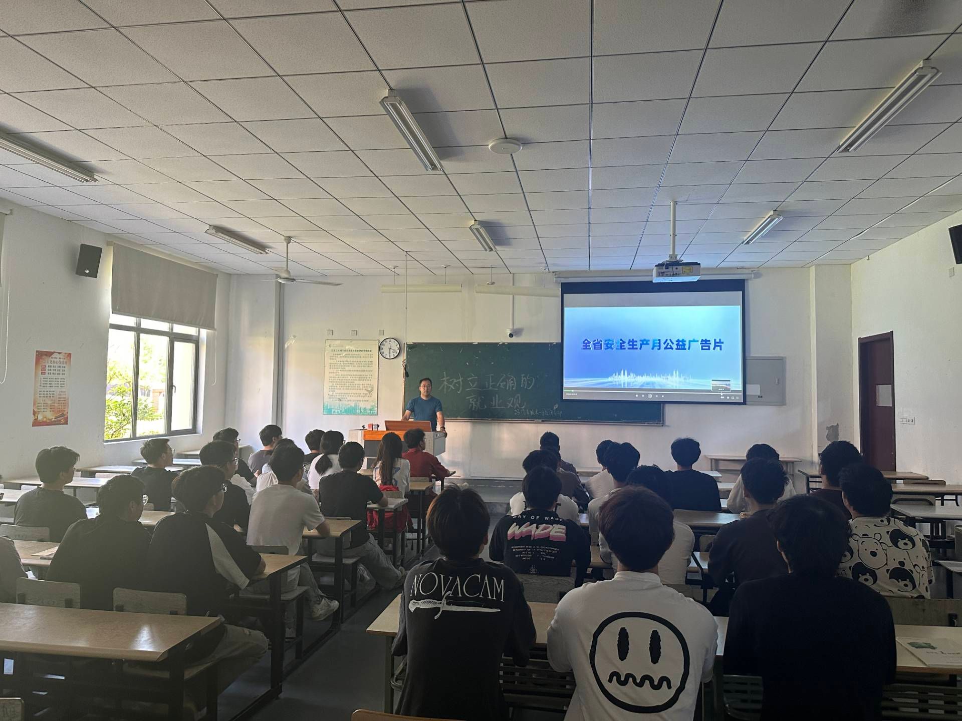 为深入学习宣传贯彻习近平总书记关于安全生产重要论述和重要指示批示精神,提升学生的安全意识和应急能力。在第23个全国“安全生产月”期间,航空与交通工程学院于近期组织学生开展安全教育并观看“2024年江苏省安全生产月”宣传片,全体22、23级学生及班主任参加了本次活动。