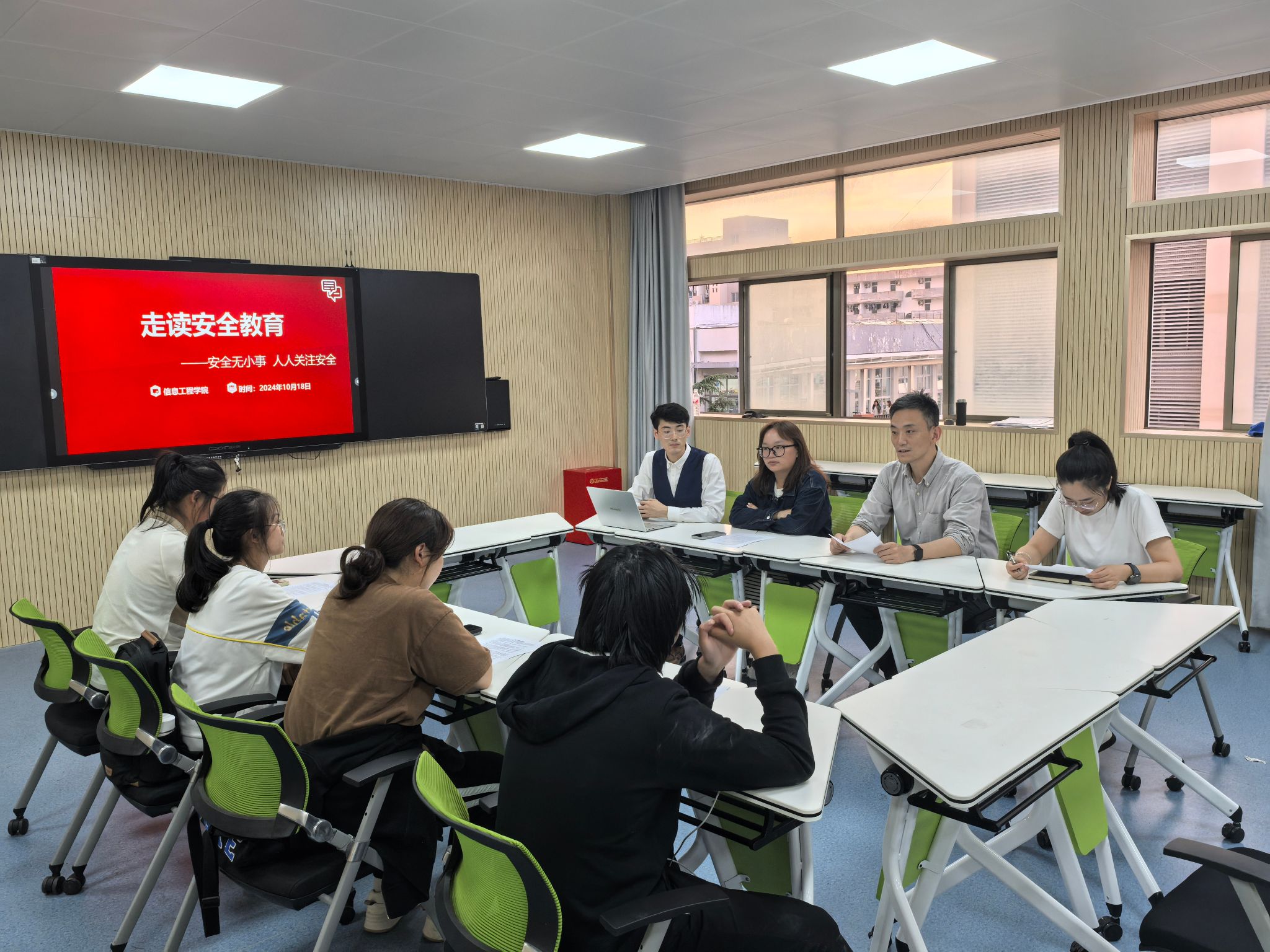 10月18日,信息工程学院在崇川、海门两校区召开走读学生安全教育座谈会,会议由学院党总支副书记高飞主持,社区辅导员韩政、相关班主任和全体走读学生参加座谈会。