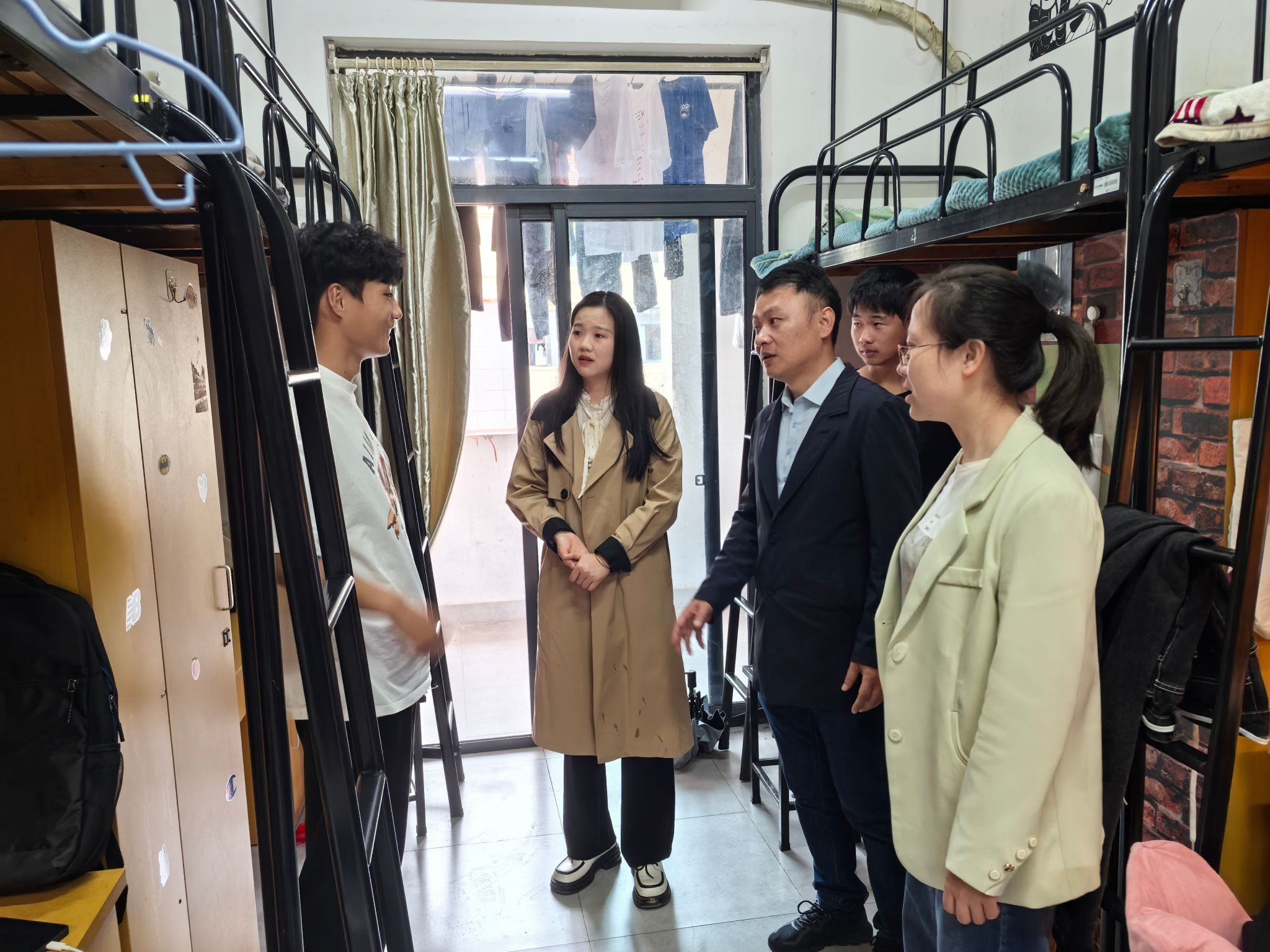 为深入了解学生的学习生活情况,传递学院的关怀与温暖,10月17日,航空与交通工程学院领导、辅导员及班主任深入学生宿舍进行走访。在学生宿舍区,老师们一间间宿舍走访,与同学们亲切交谈,询问新生是否适应新的环境,对学校的食宿条件是否满意。同学们纷纷热情回应,分享自己初入校园的感受和对大学生活的憧憬。老师们强调,大学是人生中重要的成长阶段,希望同学们珍惜时光,努力学习专业知识,积极参加各种实践活动,不断提升自己的综合素质。同时,要注重培养良好的生活习惯和人际关系,共同营造一个和谐、温馨的宿舍氛围。