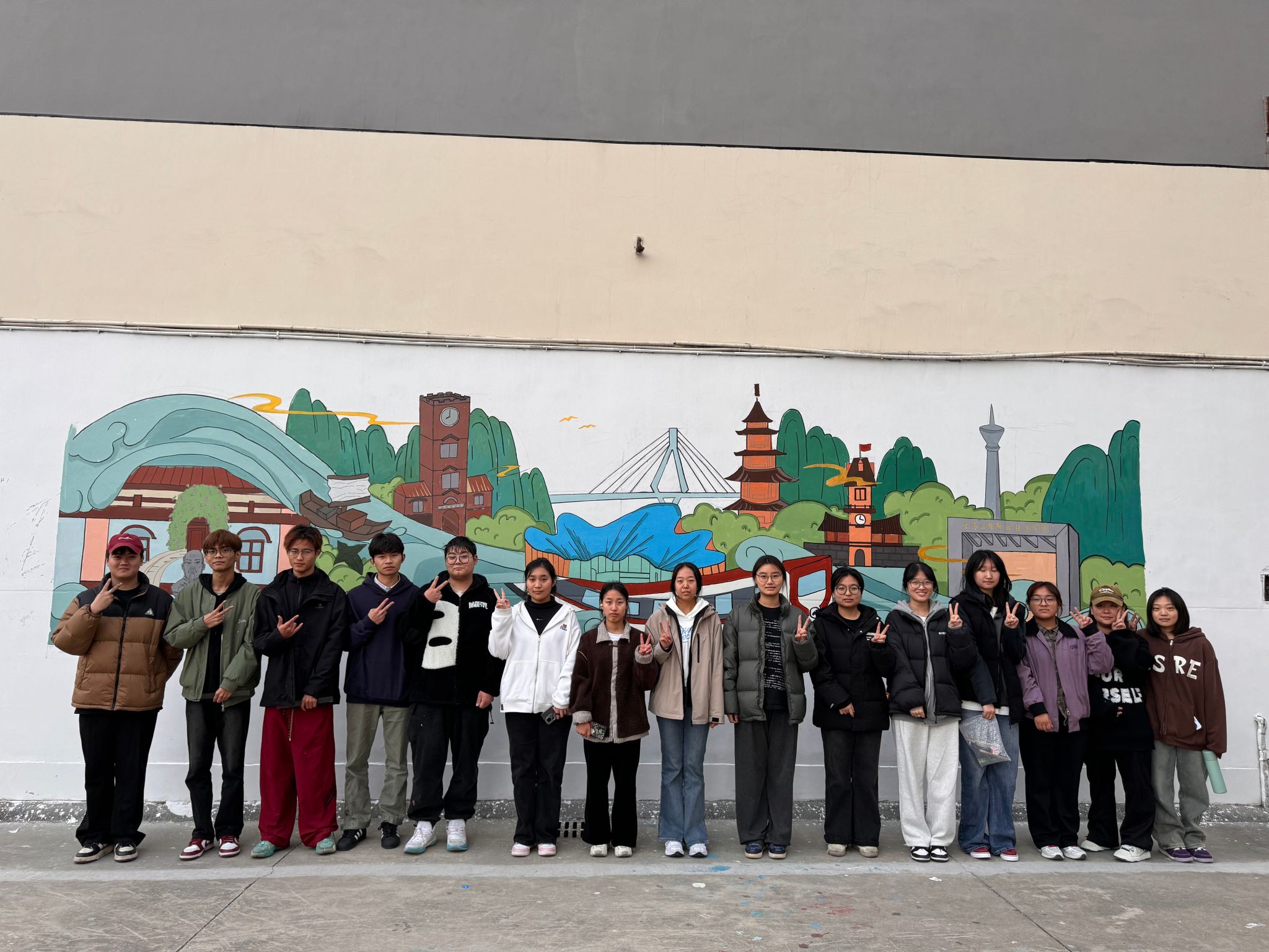 近日,在艺术设计学院班主任张馨玉的精心组织和带领下,23视传一班的学生们积极投身于学生社区服务,经过半个月的辛勤努力,在广生社区内11的围墙上,共同完成了以《一个人,一座城》为主题的墙绘创作。