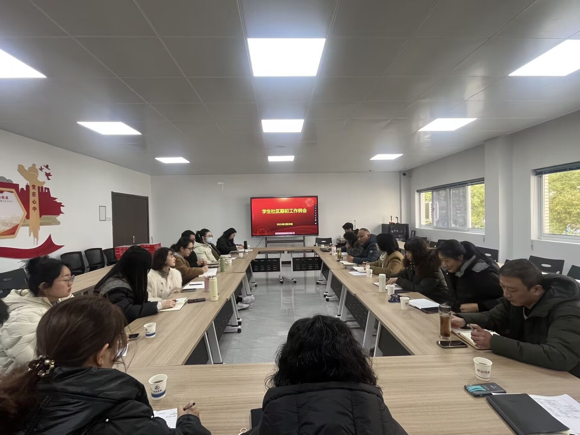2月20日上午,学工处学生社区管理服务中心在学生社区党建活动室召开新学期工作部署会议。社管中心工作人员、各学院社区辅导员和物业公司负责人参加会议。会议由学工处副处长刘宇主持。