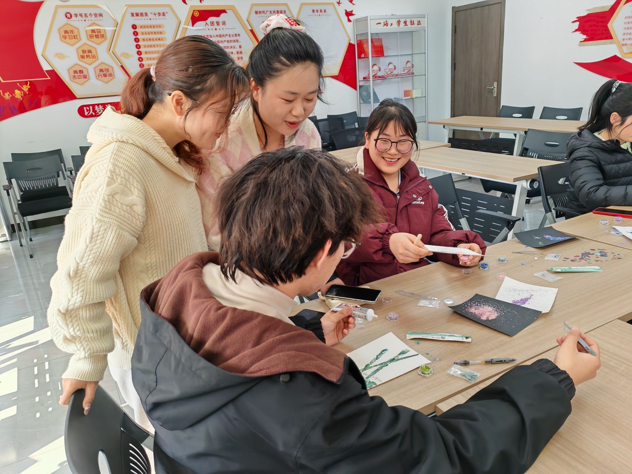 活动开始前,陈筱洁详细介绍了螺钿的历史渊源、发展脉络、工艺种类、制作流程和艺术价值。同学们在老师们的悉心指导下,纷纷拿起工具,开始动手制作。从挑选合适的贝壳薄片到精心地设计样式,从小心翼翼地打磨到耐心地拼接和修饰,无论是图案的搭配,还是贝壳片的组合,同学们充分发挥了自己的创意与想象力,设计出独一无二的螺钿装饰画,每一幅画都充满了个人风格与传统韵味。大家纷纷表示,这不仅是一次手工艺的体验,更是一次对传统文化的致敬与传承。通过动手实践,深刻体会到了匠人们精益求精、追求极致的精神。
