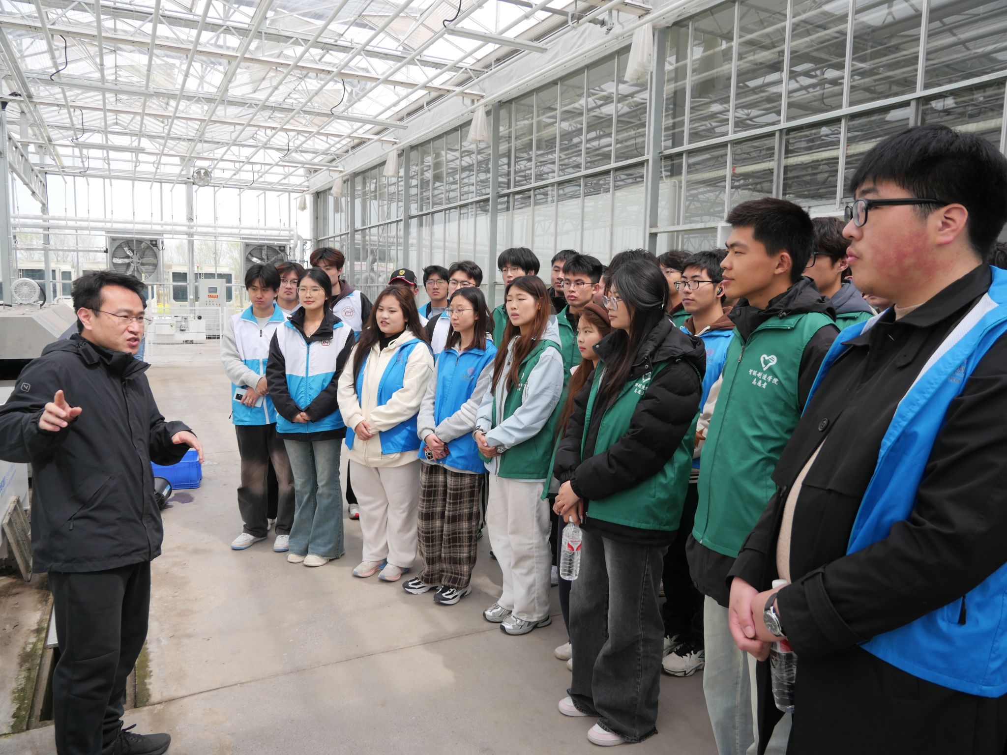 在常乐A+温室工场,学生们近距离观摩智能化农业生产系统,了解物联网、大数据等技术在现代农业中的应用。博士教师彭赟结合专业背景,为同学们解析了温室智能化控制技术的创新路径与发展前景,鼓励大家将理论与实践相结合,争做新时代技术技能人才。