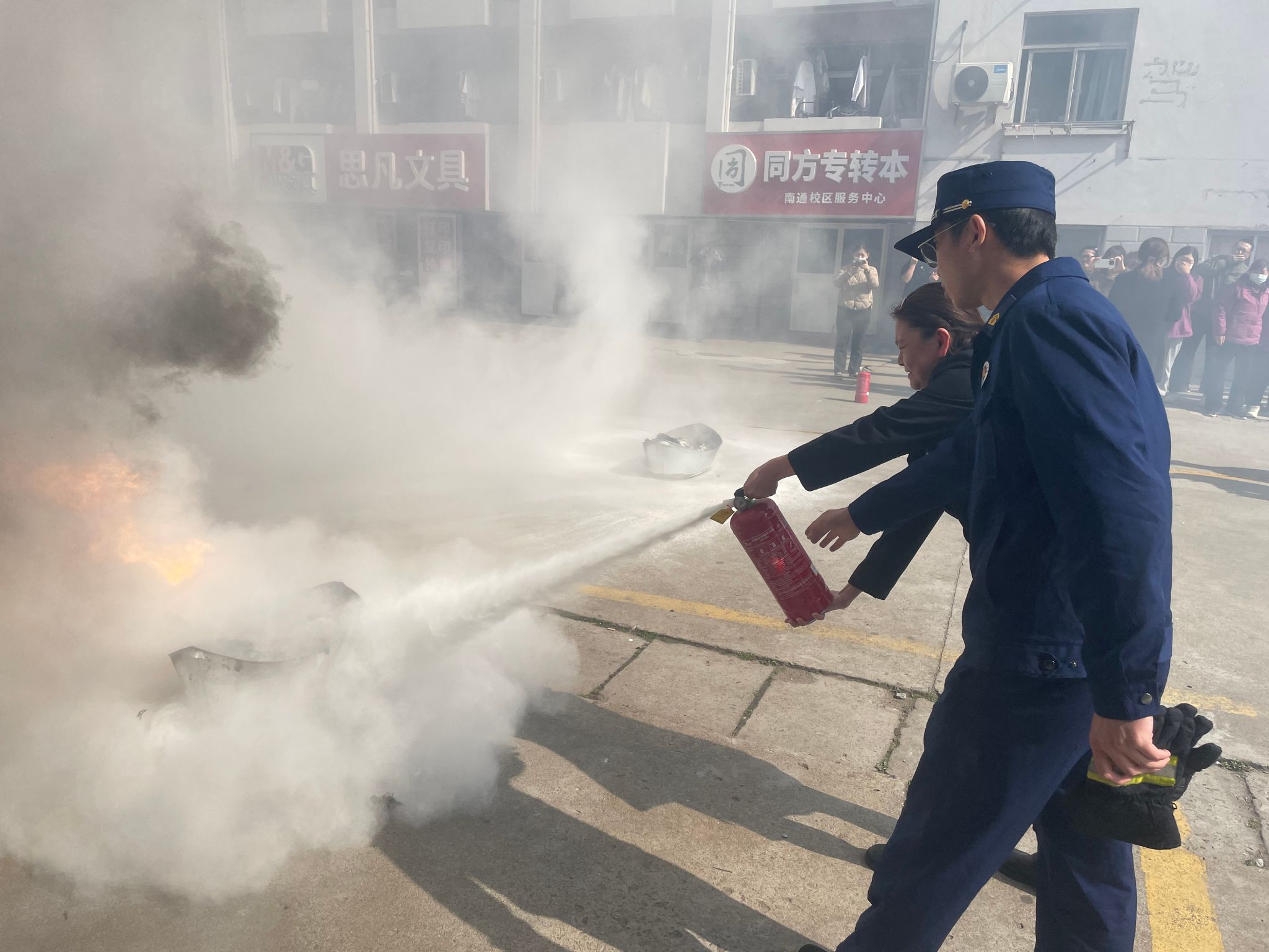 本次活动内容丰富多样,消防专家结合近年来市内外发生的真实火灾案例,重点讲解了灭火的正确流程、疏散逃生技巧,以及灭火器、防毒面具等消防设备的使用方法。现场实操环节,参训人员进行了模拟突发火情处置、油盆灭火实际操作演练。员工们热情高涨,踊跃参与体验灭火器使用,纷纷表示将会把此次学到的知识技能铭记于心,切实提高消防安全意识,共建平安校园。(学工处 刘宇/文图 阮洪妮/推荐 徐明/审核)