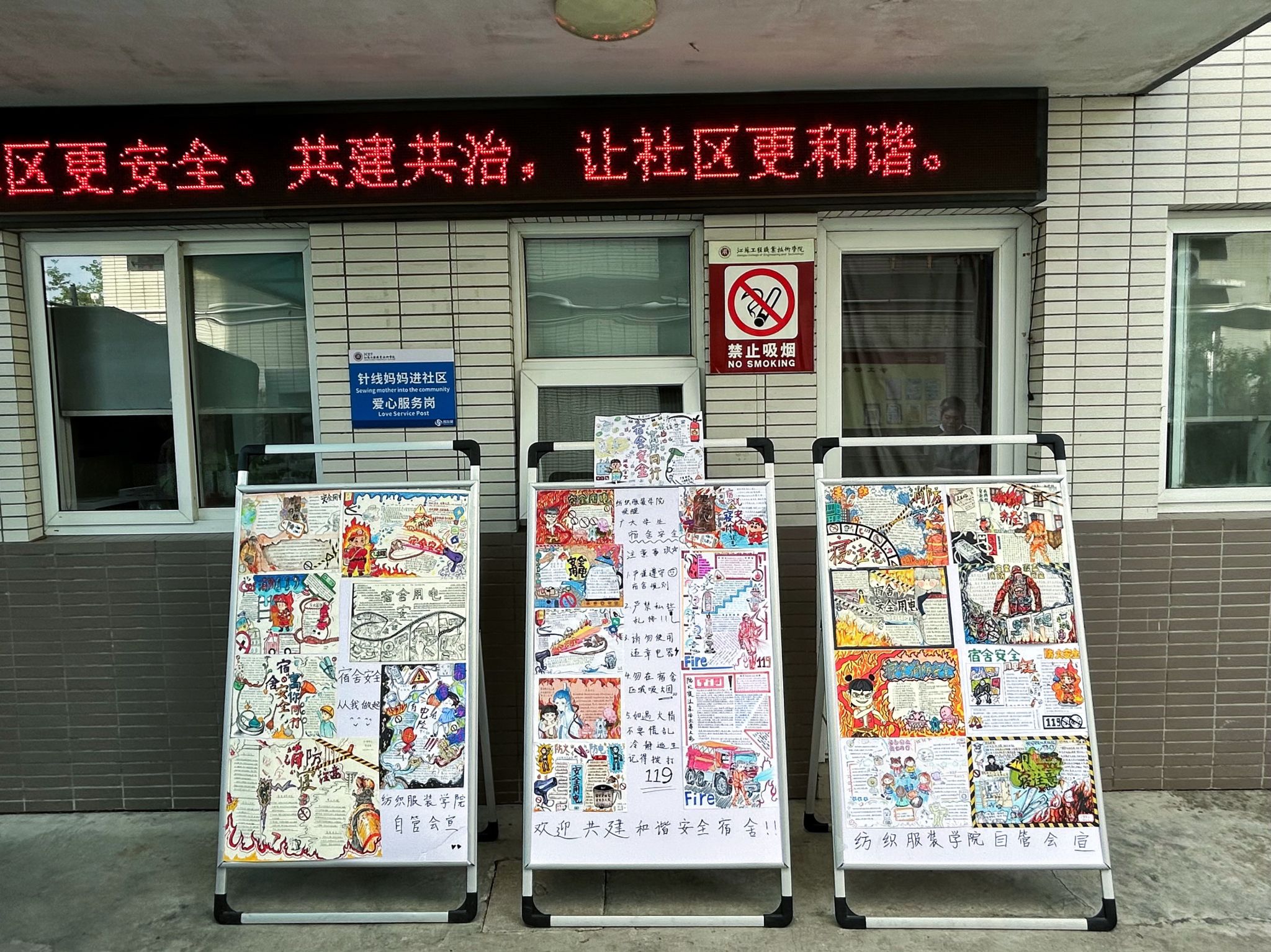 4月16日-4月21日,纺织服装学院挑选了部分手抄报优秀作品分别于崇川校区大生社区和广生社区进行了公开展示,吸引了众多学生驻足观赏,在美化社区环境的同时也在无形中增强了学生的社区安全意识。