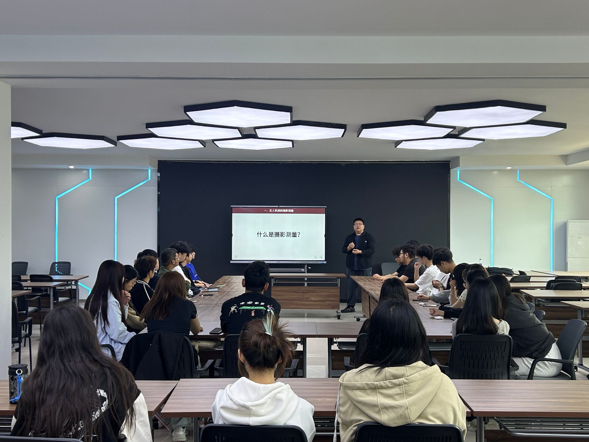 活动中,张博士首先介绍了无人机倾斜摄影测量技术的基本原理,通过多个实际案例展示了这项技术在城市建模、地形测绘、文物保护等领域的广泛应用。他还深入讲解了无人机倾斜摄影测量的研究现状与发展趋势,分享了自己在相关项目中的研究成果和经验,使同学们对这一前沿技术有了更为全面和深入的了解。