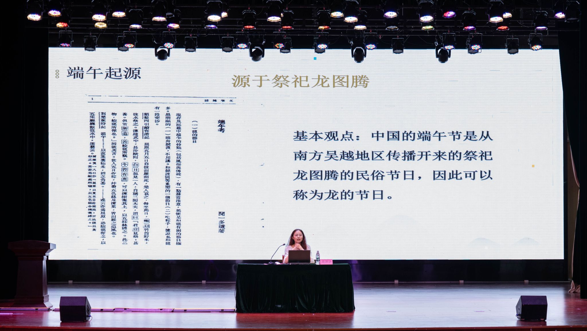 5月29日,由校养正辅导员工作室主办、建筑工程学院“青春微讲堂”承办的端午文化讲座在海门校区800人报告厅举行。马克思主义学院高涵涵应邀担任主讲人。