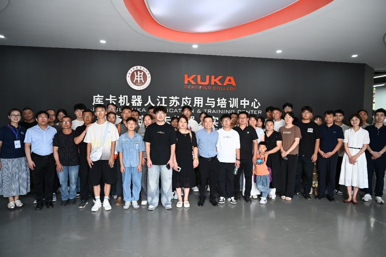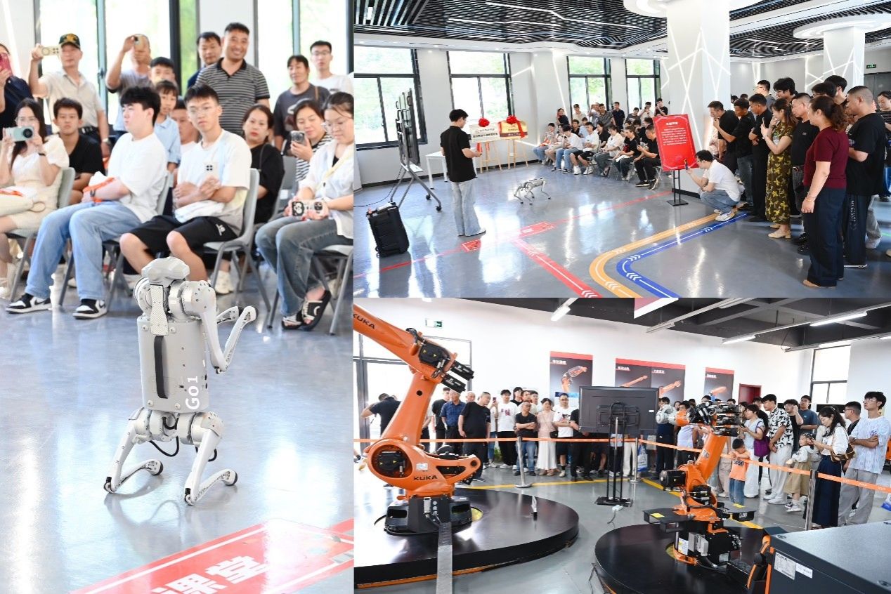 智造科创社的学生代表为新生与家长们带来了精彩的机器狗展示,新生与家长们跟随专业负责人共同前往库卡机器人实训基地参观。
