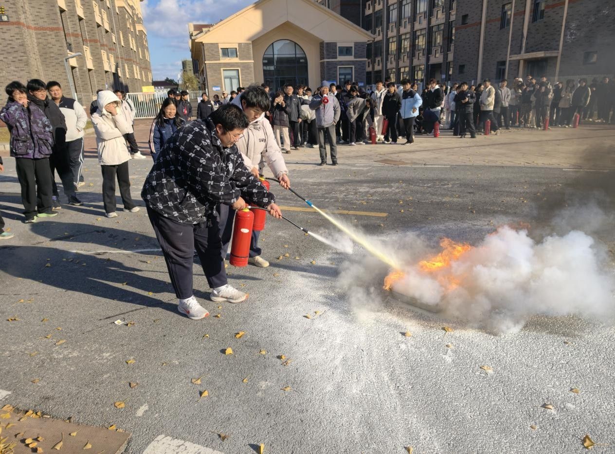 本次演习活动紧密结合校园生活实际,分为消防器材实操与应急疏散演练两个核心环节,旨在通过“讲、练、演”相结合的方式,让消防安全知识“入脑、入心、入行”。朱晓虎结合校园实际,重点讲述了宿舍常见火灾隐患,如违规使用大功率电器、私拉电线、宿舍吸烟等行为带来的严重后果,提醒同学们牢固树立“宿舍安全无小事”的责任意识。