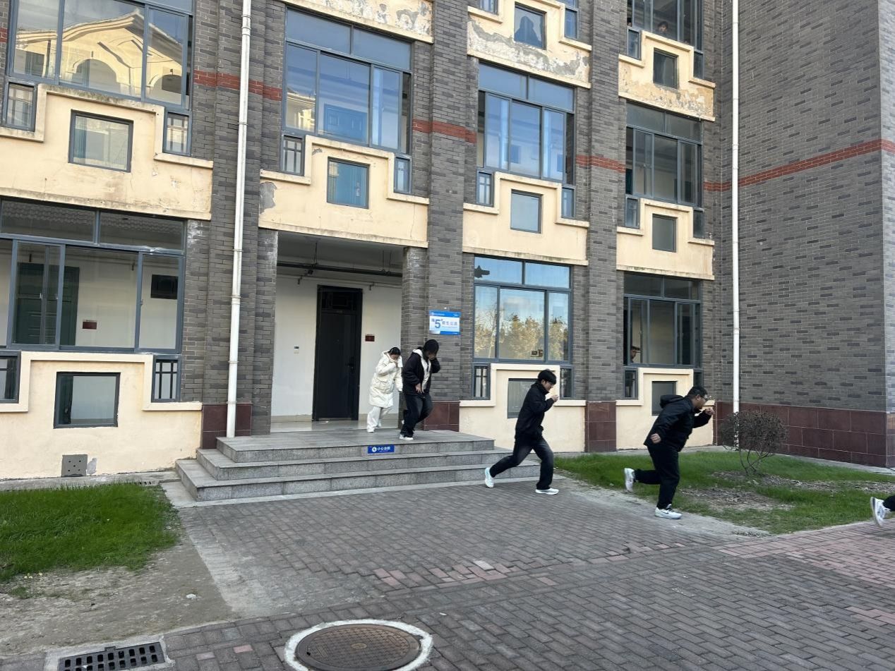 紧随其后的应急疏散演练环节模拟了社区楼宇内突发火情的场景。随着警报声响起,在辅导员、物业工作人员及学生骨干的引导下,参与演练的师生们迅速反应,严格按照应急预案,弯腰捂鼻,沿着预定疏散路线,快速、有序地从各楼层向指定的安全区域撤离。