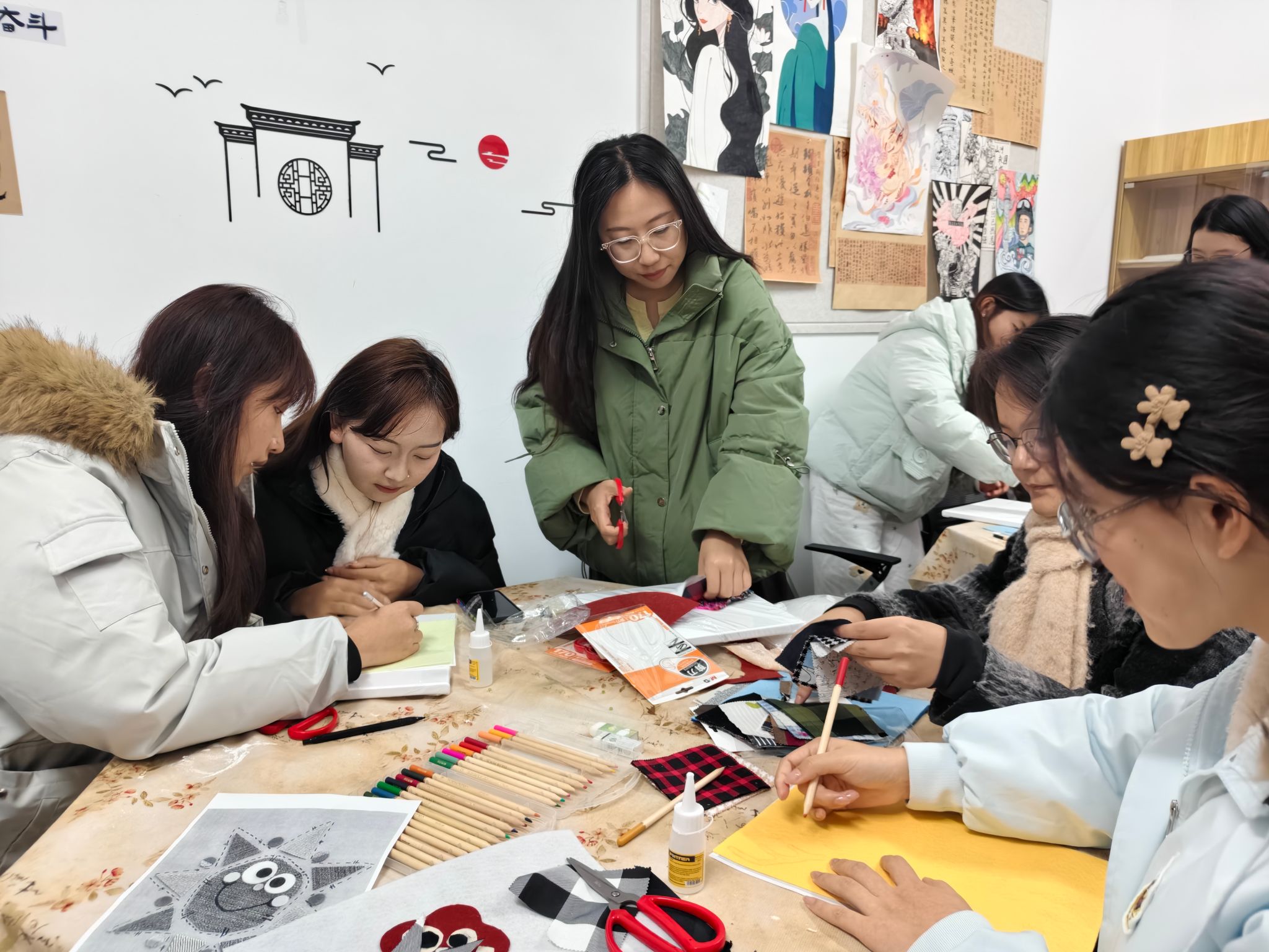 12月17日,为铸牢中华民族共同体意识,营造温馨和谐的社区文化氛围,一场主题为“锦绣中华 丝缕同心”的布贴画共创活动在内4-103“快乐加油站”学生社区活动室暖心开展。本次活动由数字与创意设计学院少数民族学生辅导员许照绮,联合结对共建单位马克思主义学院思政教师张驰越共同组织,10名来自不同民族的学生代表齐聚一堂,以布为纸,以剪代笔,共绘民族团结画卷。